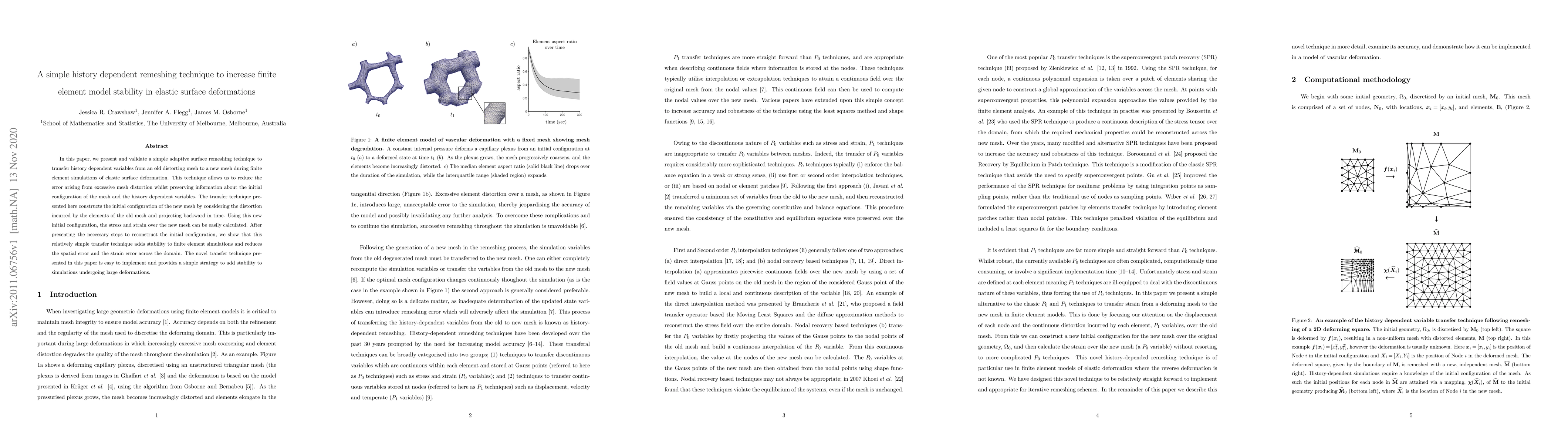 Researchers developed a simple technique to improve stability in finite element simulations of elastic surface deformations by transferring history-dependent variables from an old mesh to a new one.