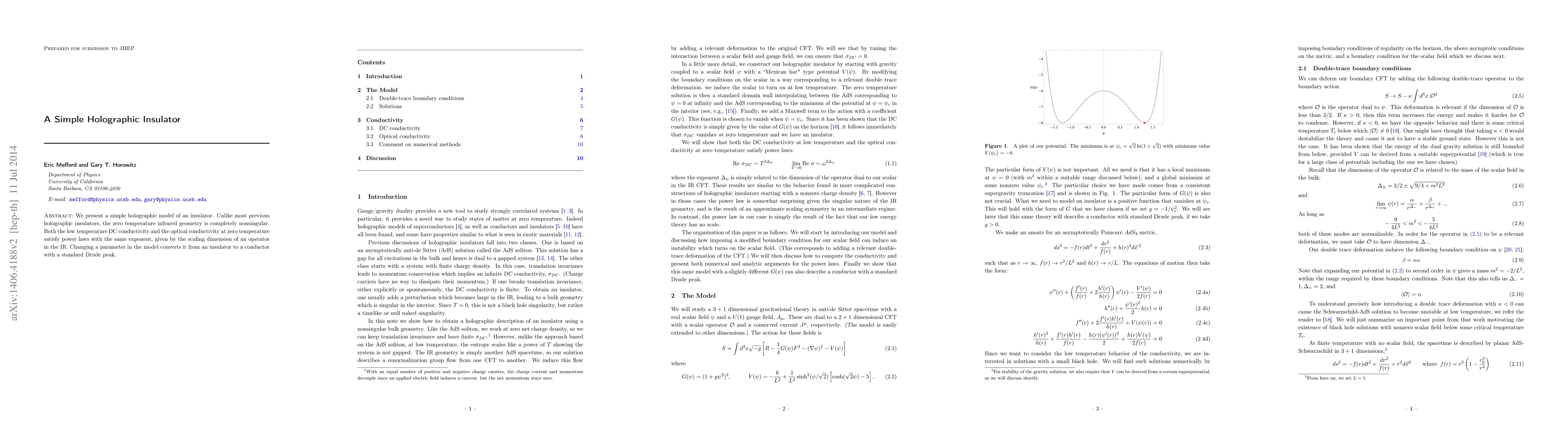 Researchers created a simple holographic model of an insulator that is completely nonsingular at zero temperature, exhibiting power-law behavior in conductivity. Changing a parameter converts the insulator to a conductor with a standard Drude peak.