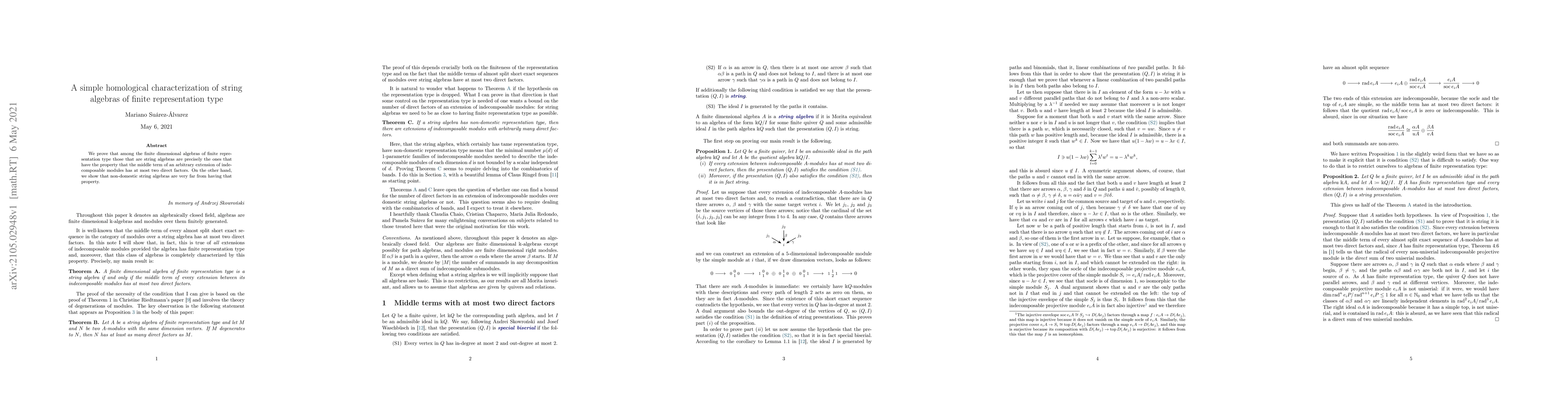 We prove that among the finite dimensional algebras of finite representation type those that are string algebras are precisely the ones that have the property that the middle term of an arbitrary extension of indecomposable modules has at most two direct factors. On the other hand, we show that non-domestic string algebras are very far from having that property.