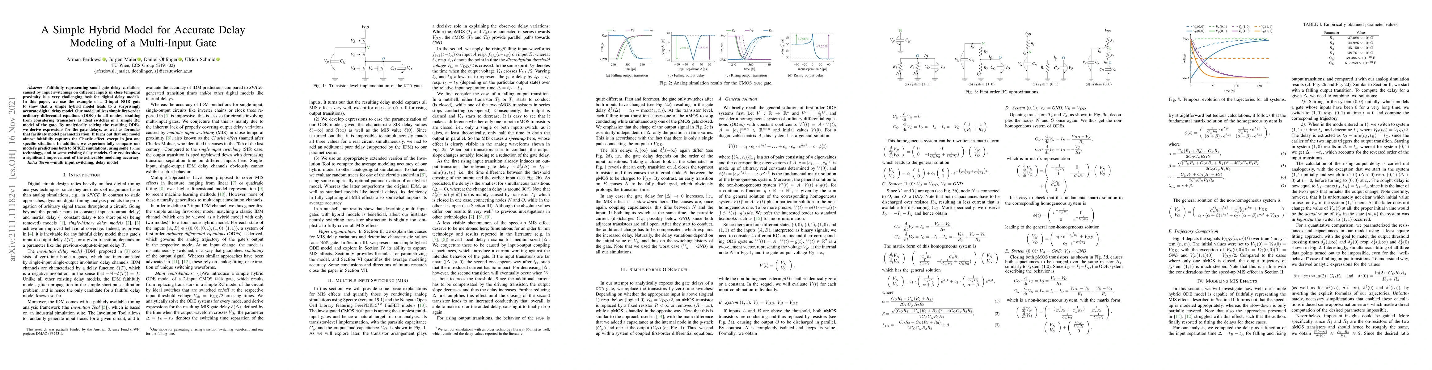 The model uses first-order ODEs and analytically solves them to derive expressions for gate delays and facilitate parametrization, with experimental results showing significant improvement over SPICE simulations and other delay models.
