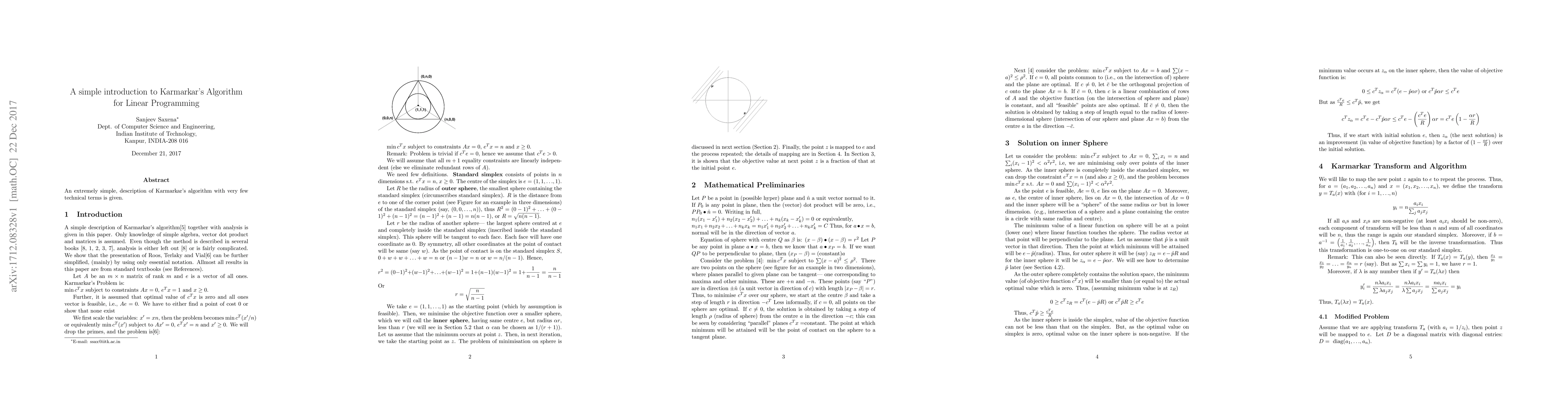 An extremely simple, description of Karmarkar's algorithm with very few technical terms is given.