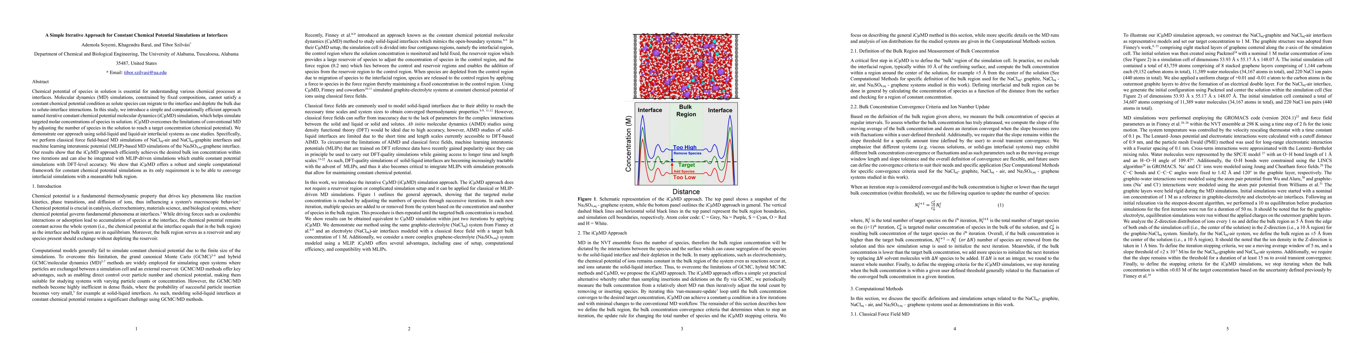 Researchers developed an iterative approach to simulate constant chemical potential at interfaces using molecular dynamics simulations, achieving targeted molar concentrations of species in solution with high accuracy.