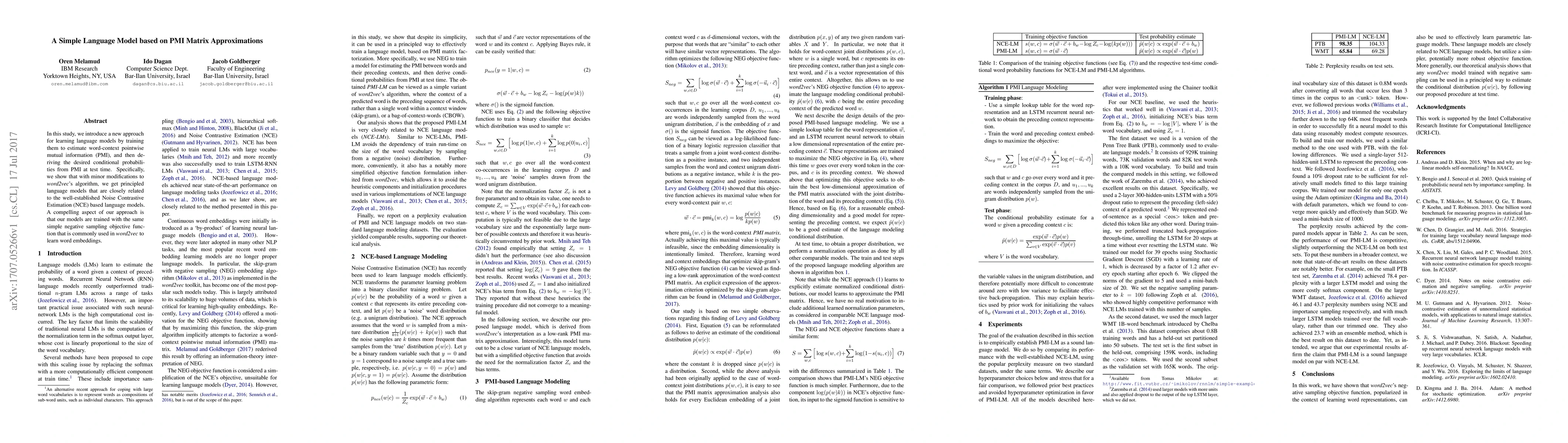Researchers developed a new approach to language models that uses pointwise mutual information to estimate conditional probabilities. Their method is based on word2vec's algorithm with minor modifications, allowing for principled learning of language models.
