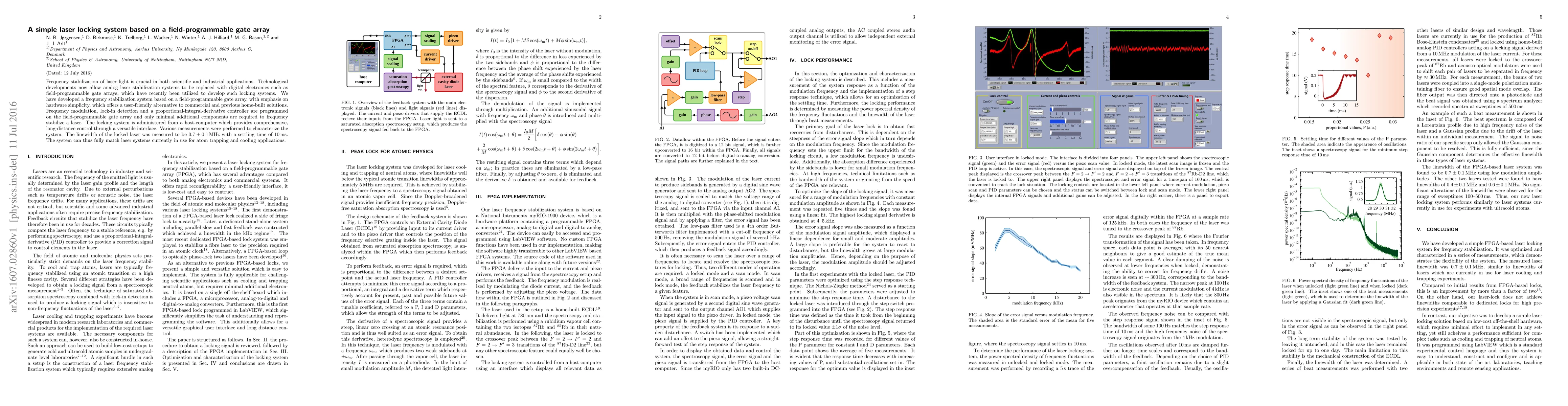 Frequency stabilization of laser light is crucial in both scientific and industrial applications. Technological developments now allow analog laser stabilization systems to be replaced with digital electronics such as field-programmable gate arrays, which have recently been utilized to develop such locking systems. We have developed a frequency stabilization system based on a field-programmable gate array, with emphasis on hardware simplicity, which offers a user-friendly alternative to commercial and previous home-built solutions. Frequency modulation, lock-in detection and a proportional-integral-derivative controller are programmed on the field-programmable gate array and only minimal additional components are required to frequency stabilize a laser. The locking system is administered from a host-computer which provides comprehensive, long-distance control through a versatile interface. Various measurements were performed to characterize the system. The linewidth of the locked laser was measured to be $0.7 \pm 0.1 \; \rm{MHz}$ with a settling time of $10 \; \rm{ms}$. The system can thus fully match laser systems currently in use for atom trapping and cooling applications.