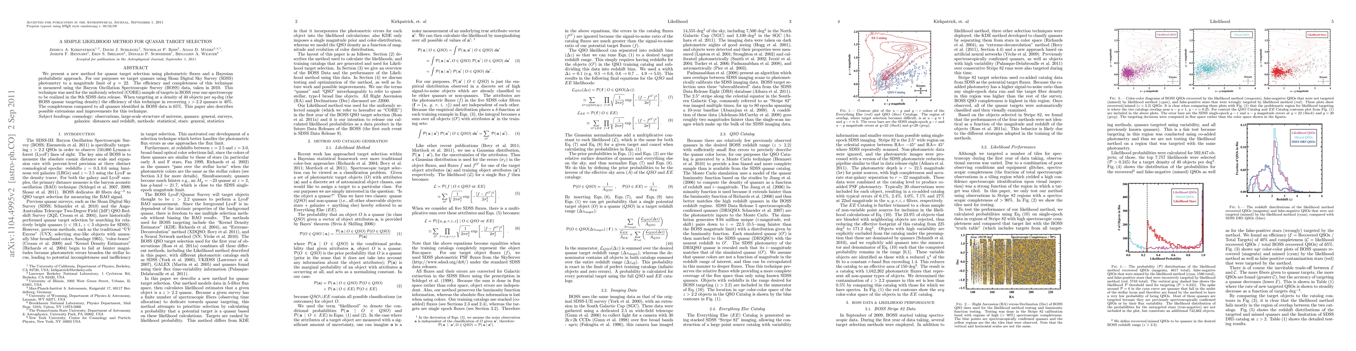 This paper introduces a Bayesian probabilistic method for selecting quasar targets using Sloan Digital Sky Survey (SDSS) photometry, achieving 40% efficiency in recovering z>2.2 quasars at a density of 40 objects per sq-deg, with 65% completeness compared to BOSS data. Future improvements and extensions are also discussed.
