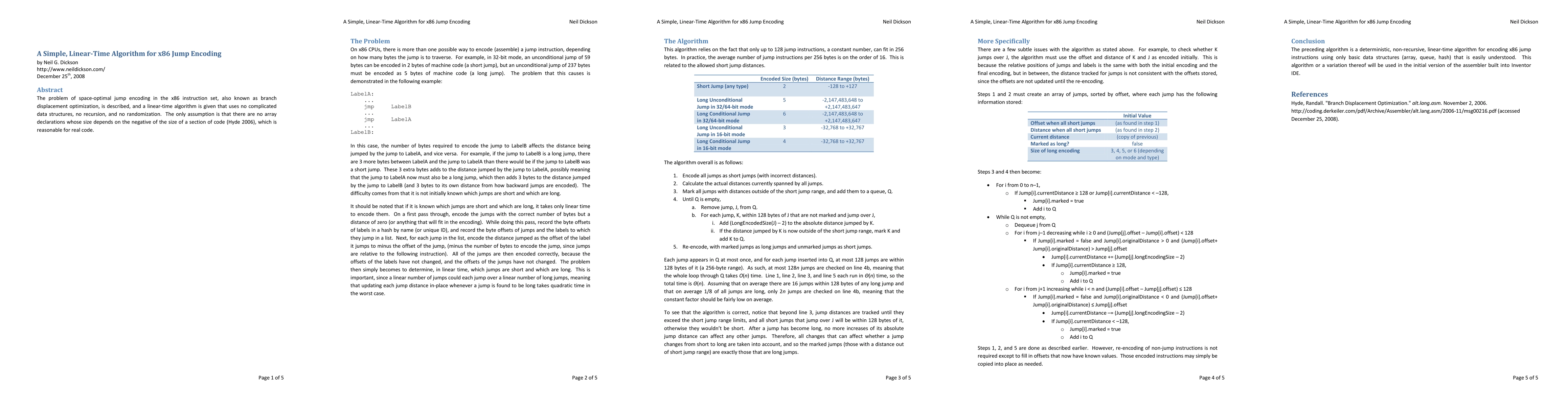 Researchers developed a simple algorithm for optimizing x86 jump encoding that runs in linear time with no complex data structures or recursion, solving the branch displacement optimization problem.