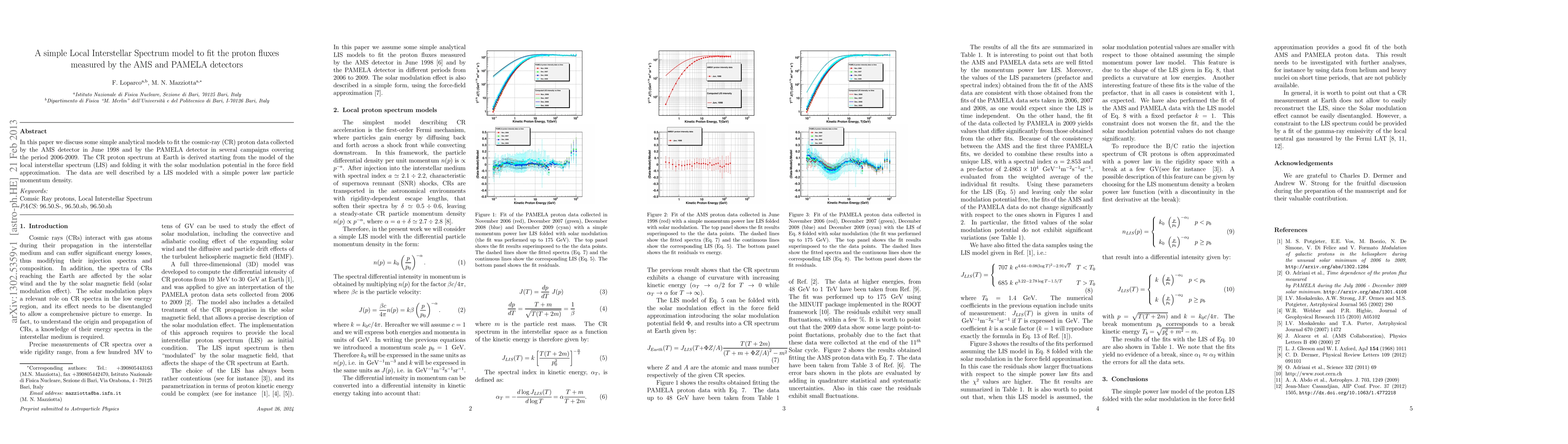 Researchers developed a simple model to fit cosmic-ray proton fluxes measured by detectors AMS and PAMELA, using the local interstellar spectrum and solar modulation potential.