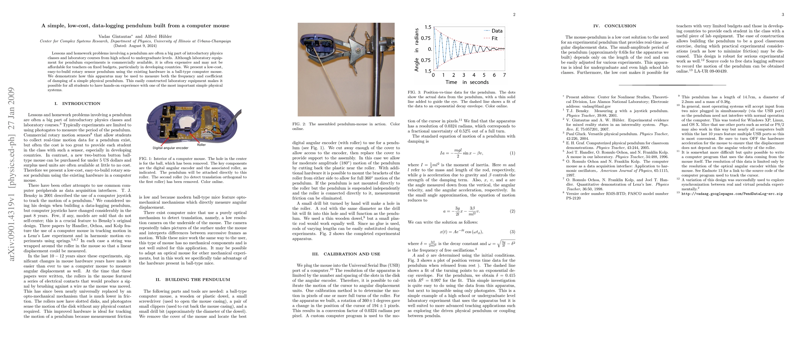 This paper presents a low-cost pendulum apparatus built from a computer mouse, enabling students to conduct pendulum experiments without expensive commercial equipment. The device measures frequency and damping coefficient, providing hands-on experience for physics students at various educational levels.