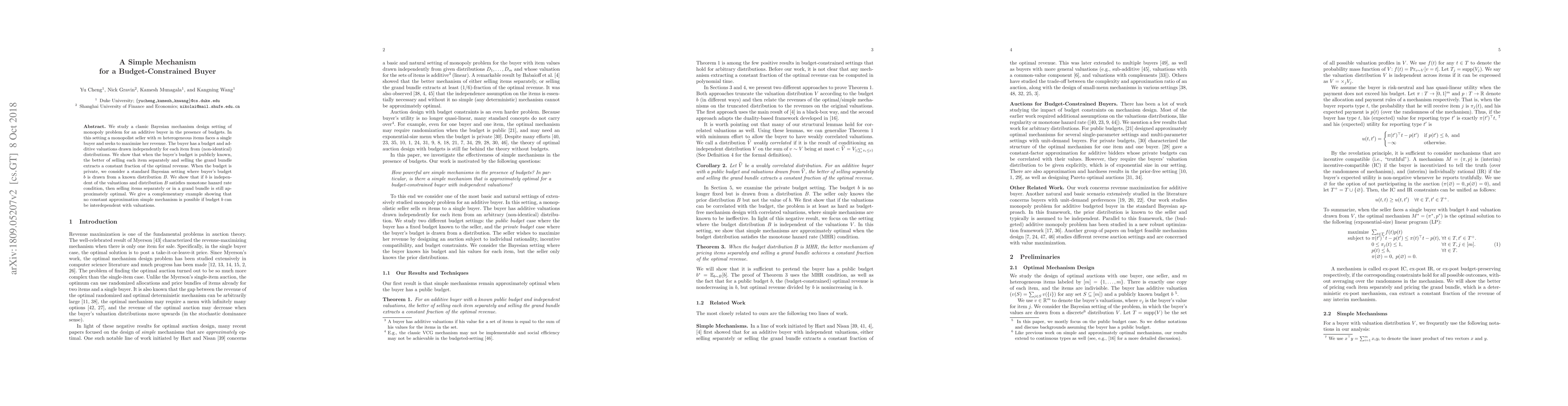 This paper explores revenue maximization for a monopolist seller in a Bayesian mechanism design setting, where a buyer with a known or unknown budget seeks to purchase $m$ heterogeneous items. When the buyer's budget is public, selling items separately or as a bundle achieves a constant fraction of optimal revenue. For private budgets, if they are independent of valuations and meet the monotone hazard rate condition, the same holds true, but interdependent budgets preclude simple constant-approximation mechanisms.
