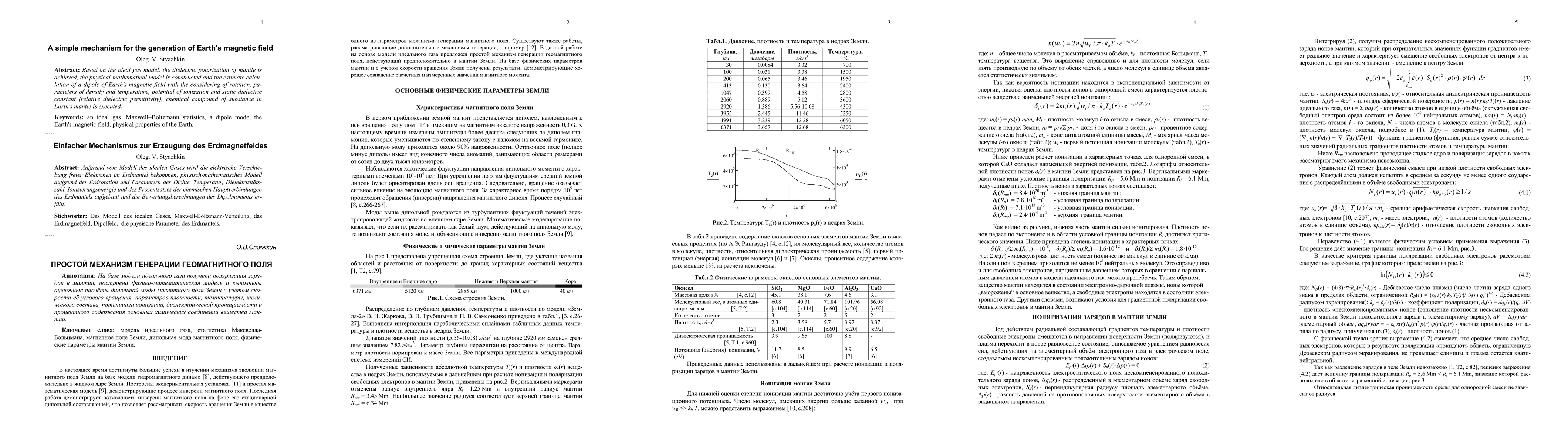 This paper proposes a simple mechanism for generating Earth's magnetic field based on the dielectric polarization of the mantle, using an ideal gas model. It constructs a physical-mathematical model to estimate the dipole of Earth's magnetic field, considering factors like rotation, density, temperature, ionization potential, and the chemical composition of mantle substances.