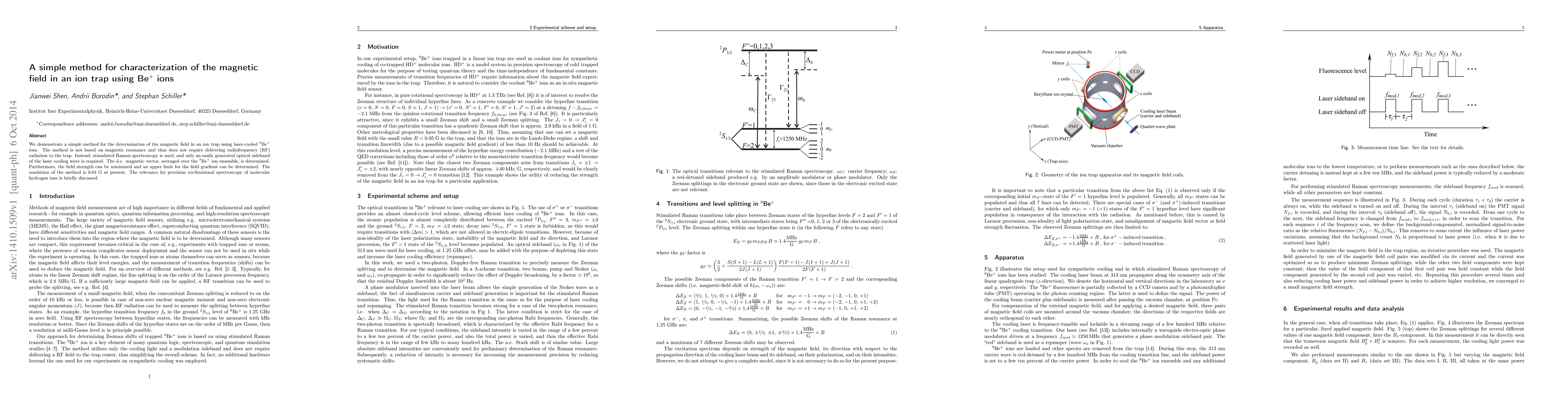 Researchers developed a simple method to measure magnetic fields in ion traps using Be+ ions and laser-cooled spectroscopy, allowing for precise determination of field strength with a resolution of 0.04 G.