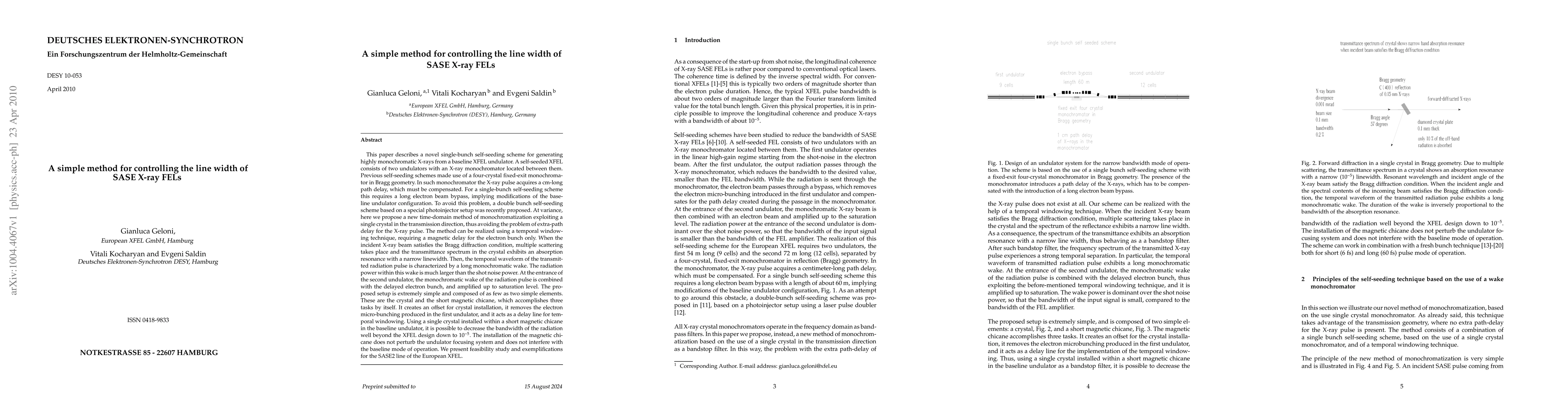This paper describes a novel single-bunch self-seeding scheme for generating highly monochromatic X-rays from a baseline XFEL undulator. Previous schemes made use of a four-crystal fixed-exit monochromator in Bragg geometry. In such monochromator the X-ray pulse acquires a cm-long path delay, which must be compensated. For a single-bunch self-seeding scheme this requires a long electron beam bypass, implying modifications of the baseline undulator configuration. To avoid this problem, a double bunch self-seeding scheme based on a special photoinjector setup was recently proposed. At variance, here we propose a new time-domain method of monochromatization exploiting a single crystal in the transmission direction, thus avoiding the problem of extra-path delay for the X-ray pulse. The method can be realized using a temporal windowing technique, requiring a magnetic delay for the electron bunch only. The proposed setup is extremely simple and composed of as few as two simple elements. These are the crystal and the short magnetic chicane, which accomplishes three tasks by itself. It creates an offset for crystal installation, it removes the electron micro-bunching produced in the first undulator, and it acts as a delay line for temporal windowing. Using a single crystal installed within a short magnetic chicane in the baseline undulator, it is possible to decrease the bandwidth of the radiation well beyond the XFEL design down to 10E-5. The installation of the magnetic chicane does not perturb the undulator focusing system and does not interfere with the baseline mode of operation. We present feasibility study and exemplifications for the SASE2 line of the European XFEL.