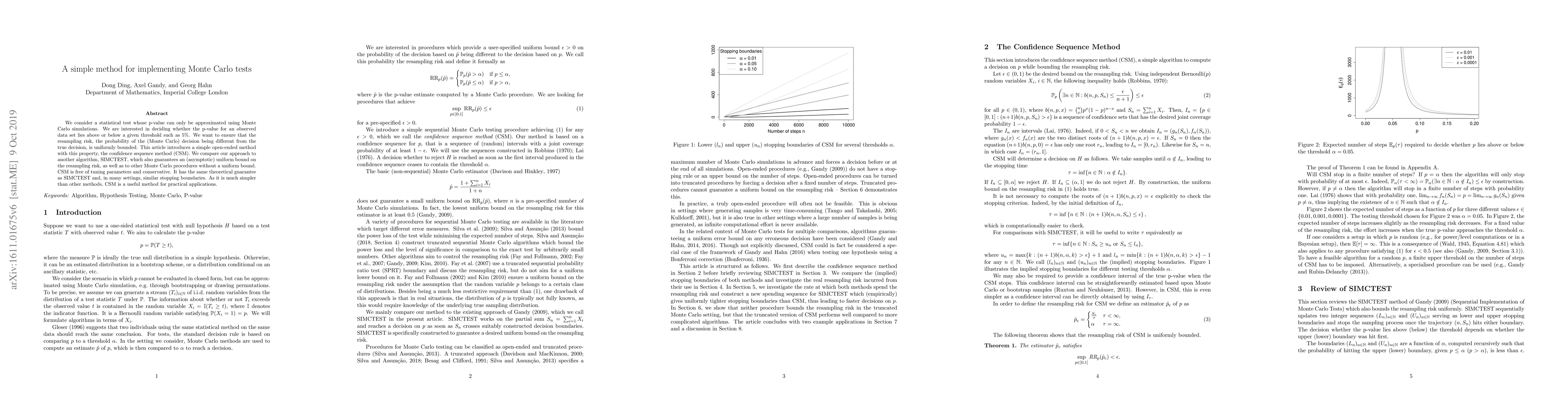 This paper introduces the Confidence Sequence Method (CSM), a simple Monte Carlo test for determining whether a p-value lies above or below a threshold, ensuring a uniformly bounded resampling risk. CSM is compared to SIMCTEST and other methods, showing it is simpler, parameter-free, and equally effective in practical applications.