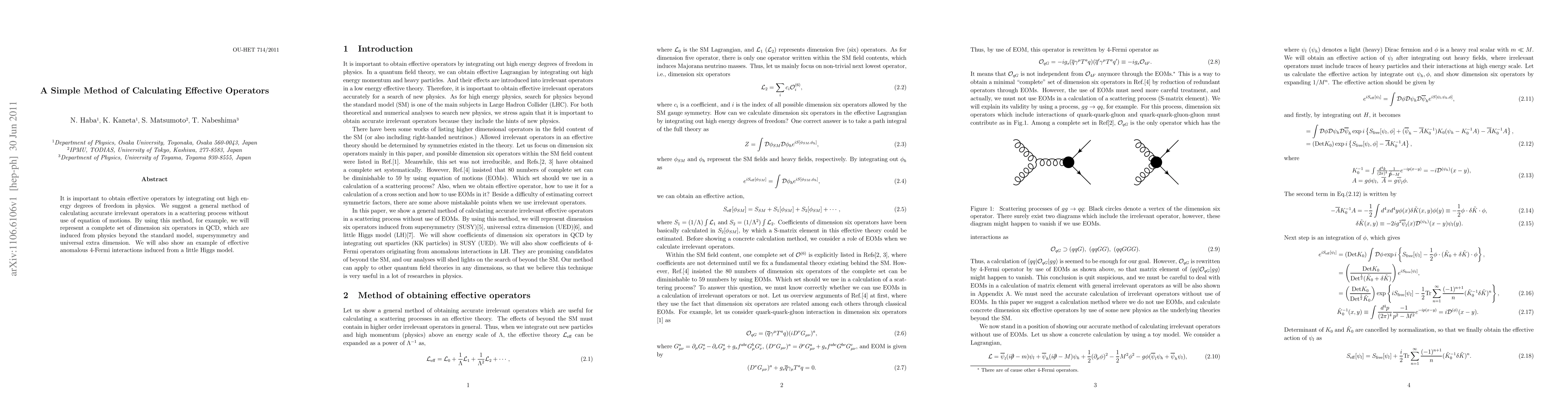 Researchers propose a simple method for calculating effective operators in physics, which can reveal new physics beyond the Standard Model, such as supersymmetry and extra dimensions. The approach enables the calculation of complete sets of dimension six operators without using equations of motion.