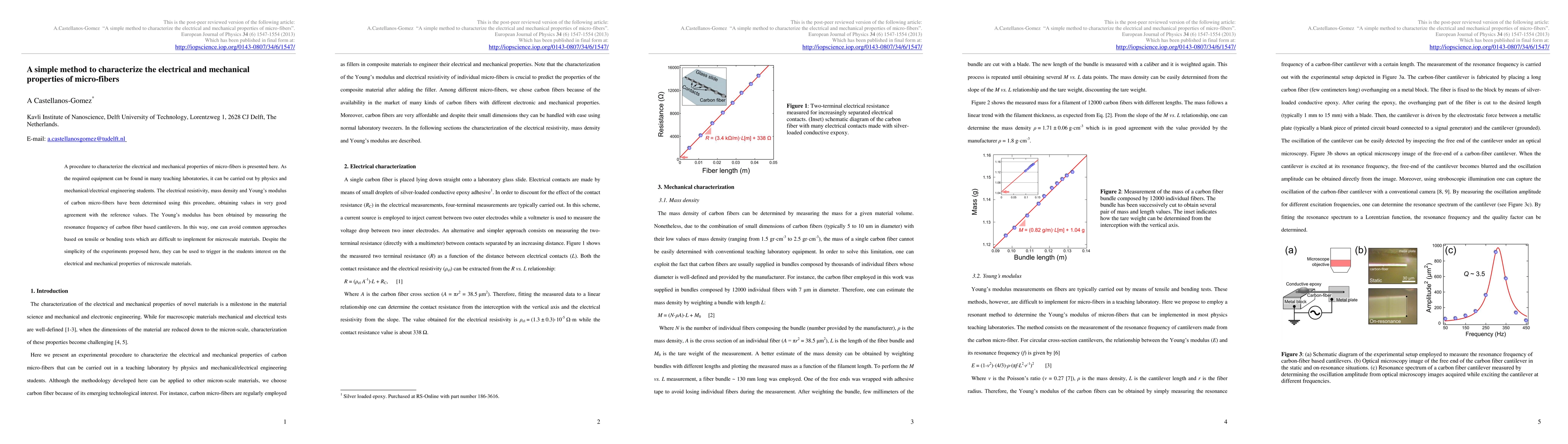 Researchers developed a simple method to measure electrical and mechanical properties of micro-fibers, including Young's modulus, using readily available equipment in teaching labs. The technique was found to produce accurate results comparable to established methods.