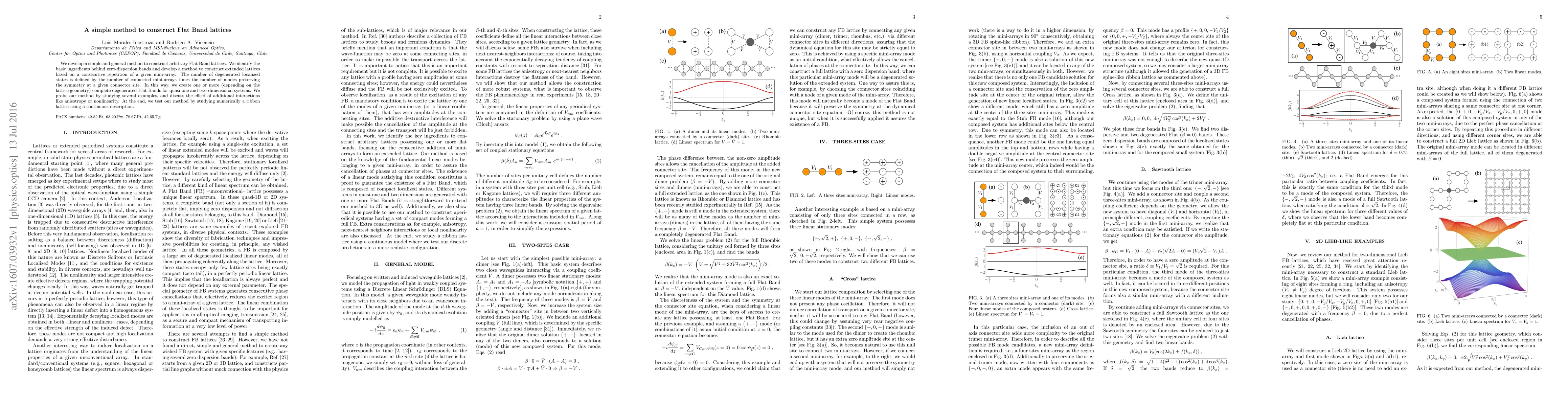 We develop a simple and general method to construct arbitrary Flat Band lattices. We identify the basic ingredients behind zero-dispersion bands and develop a method to construct extended lattices based on a consecutive repetition of a given mini-array. The number of degenerated localized states is defined by the number of connected mini-arrays times the number of modes preserving the symmetry at a given connector site. In this way, we create one or more (depending on the lattice geometry) complete degenerated Flat Bands for quasi-one and two-dimensional systems. We probe our method by studying several examples, and discuss the effect of additional interactions like anisotropy or nonlinearity. At the end, we test our method by studying numerically a ribbon lattice using a continuous description.