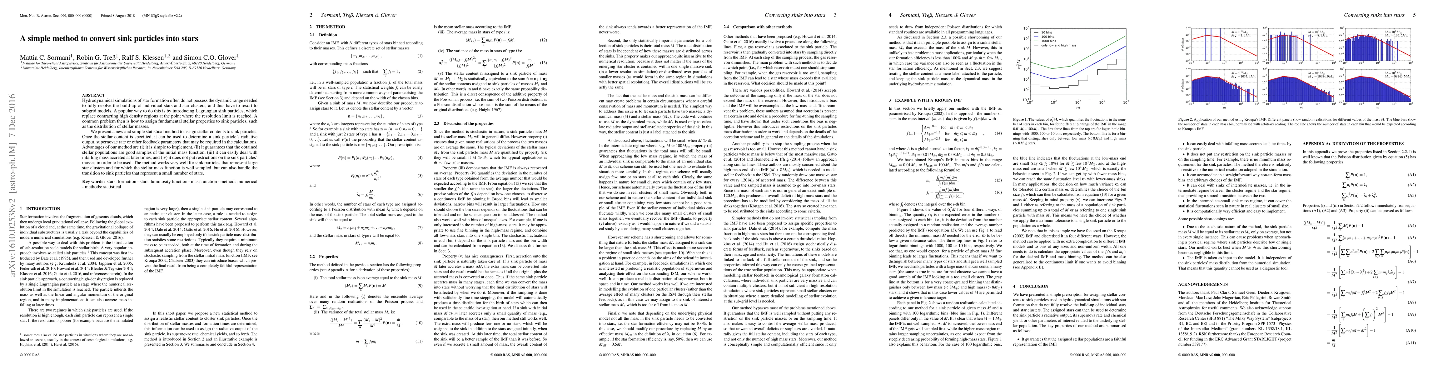 Hydrodynamical simulations of star formation often do not possess the dynamic range needed to fully resolve the build-up of individual stars and star clusters, and thus have to resort to subgrid models. A popular way to do this is by introducing Lagrangian sink particles, which replace contracting high density regions at the point where the resolution limit is reached. A common problem then is how to assign fundamental stellar properties to sink particles, such as the distribution of stellar masses. We present a new and simple statistical method to assign stellar contents to sink particles. Once the stellar content is specified, it can be used to determine a sink particle's radiative output, supernovae rate or other feedback parameters that may be required in the calculations. Advantages of our method are (i) it is simple to implement, (ii) it guarantees that the obtained stellar populations are good samples of the initial mass function, (iii) it can easily deal with infalling mass accreted at later times, and (iv) it does not put restrictions on the sink particles' masses in order to be used. The method works very well for sink particles that represent large star clusters and for which the stellar mass function is well sampled, but can also handle the transition to sink particles that represent a small number of stars.