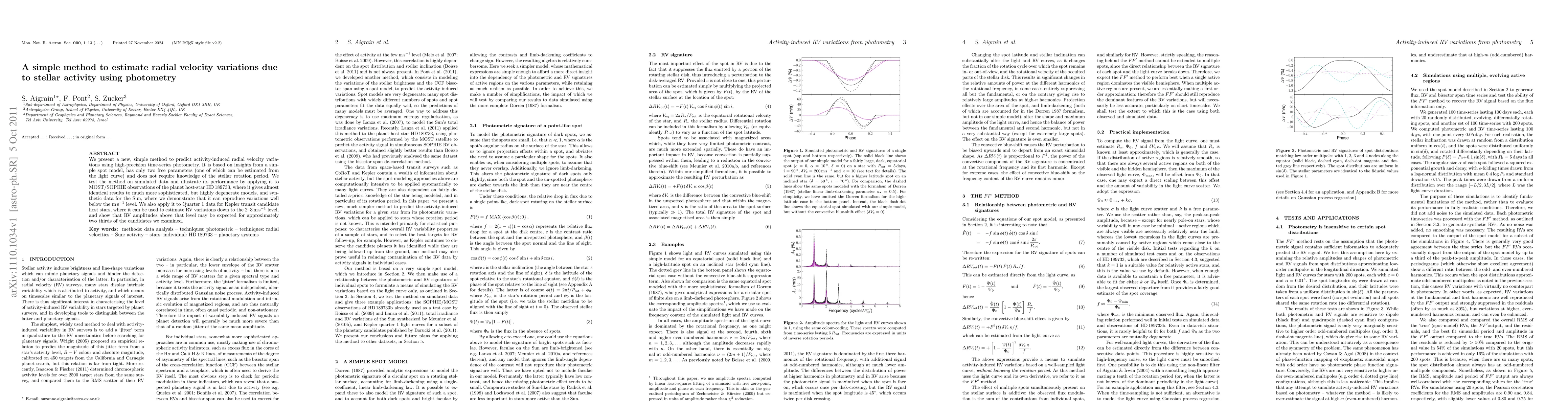 This paper introduces a straightforward method for estimating radial velocity variations due to stellar activity using high-precision photometry, requiring minimal parameters and no rotation period knowledge. The method is validated on observations of HD189733 and Kepler transit candidates, demonstrating its effectiveness in predicting variations down to 2-3 m/s.
