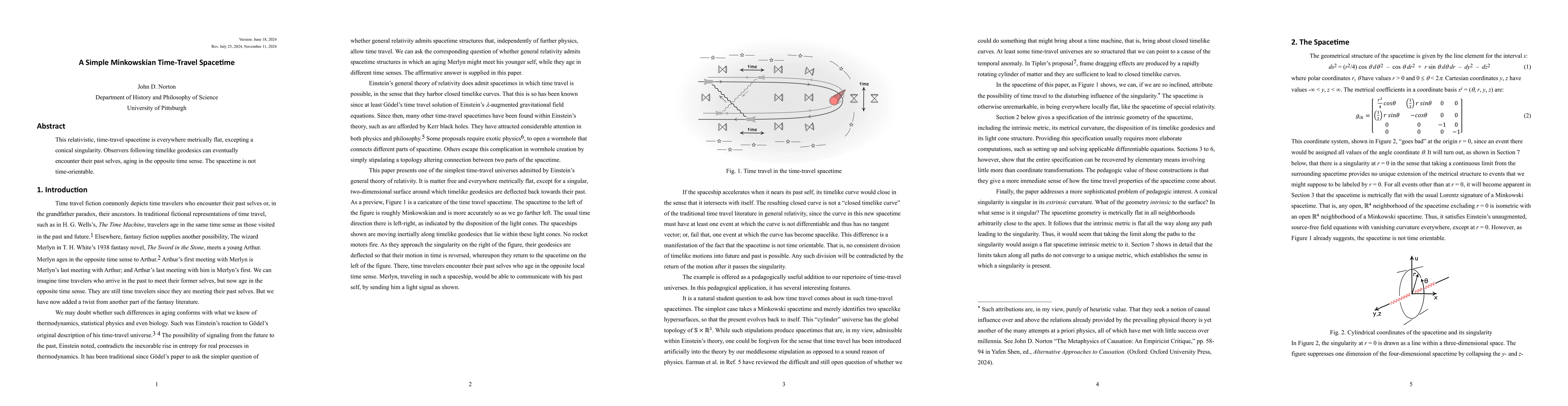 Summary: This paper presents a flat Minkowskian spacetime with a conical singularity allowing observers to meet their past selves by traveling along timelike geodesics; however, the spacetime lacks a consistent time orientation.