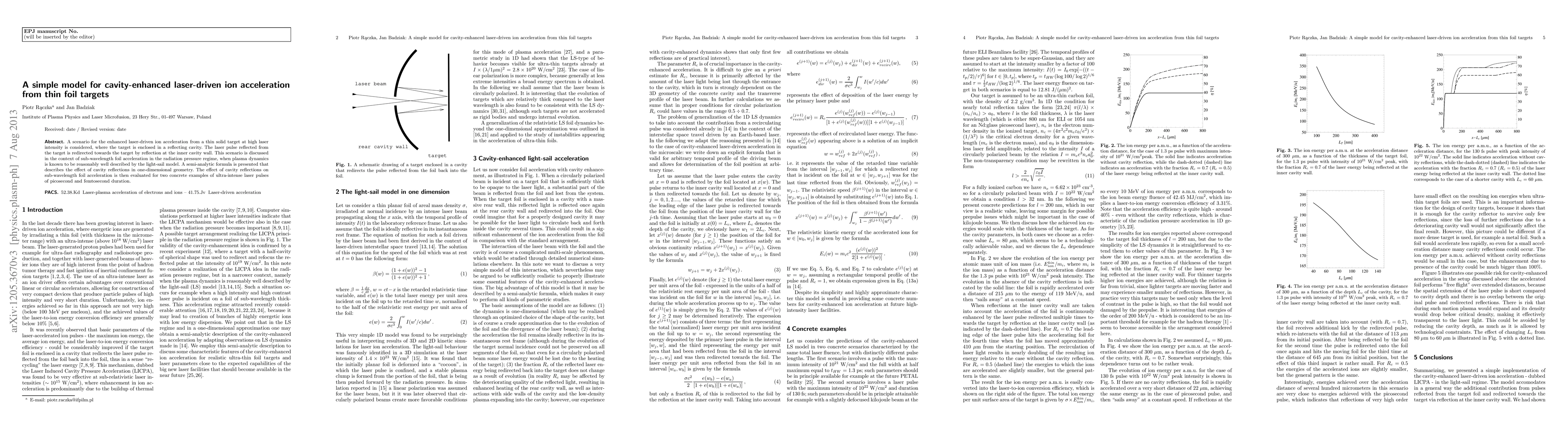This paper presents a simple model for cavity-enhanced laser-driven ion acceleration from thin foil targets, showing how reflections within a cavity can redirect laser pulses to enhance acceleration in the radiation pressure regime. The model is applied to evaluate the effect of cavity reflections on sub-wavelength foil acceleration using ultra-intense picosecond and femtosecond laser pulses.