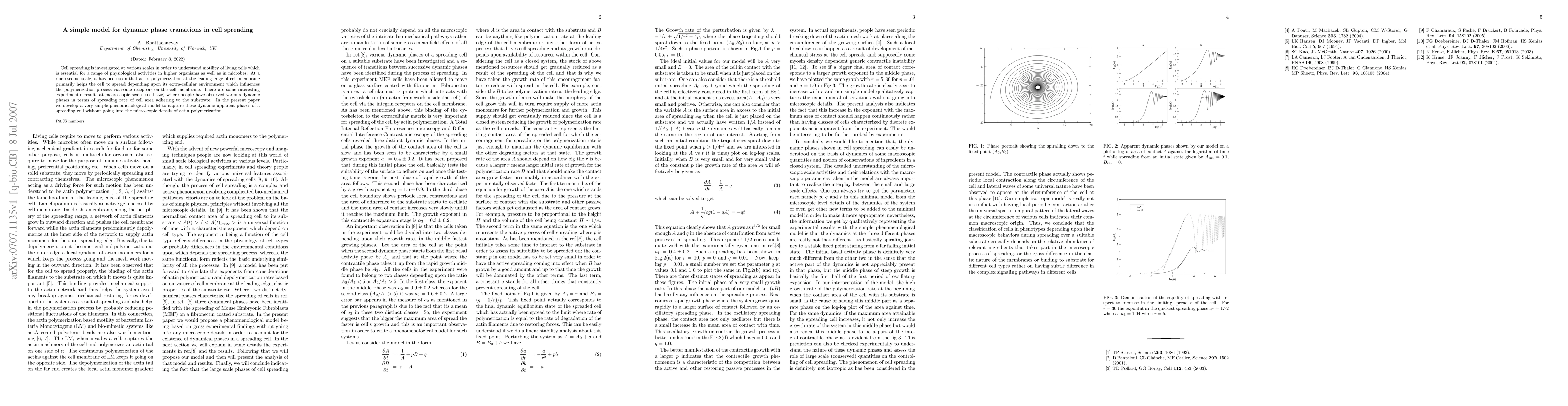 Cell spreading is investigated at various scales in order to understand motility of living cells which is essential for a range of physiological activities in higher organisms as well as in microbes. At a microscopic scale, it has been seen that actin polymerization at the leading edge of cell membrane primarily helps the cell to spread depending upon its extra-cellular environment which influences the polymerization process via some receptors on the cell membrane. There are some interesting experimental results at macroscopic scales (cell size) where people have observed various dynamic phases in terms of spreading rate of cell area adhering to the substrate. In the present paper we develop a very simple phenomenological model to capture these dynamic apparent phases of a spreading cell without going into the microscopic details of actin polymerization.