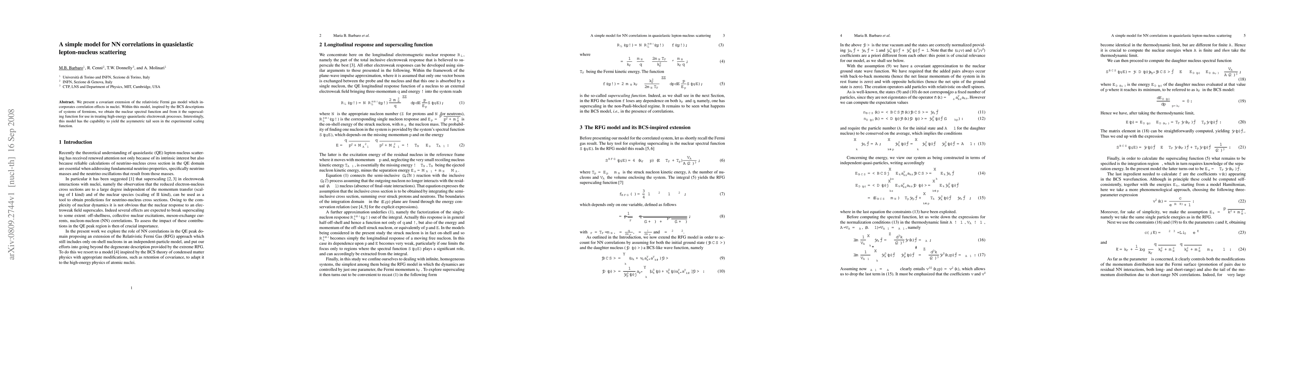 We present a covariant extension of the relativistic Fermi gas model which incorporates correlation effects in nuclei. Within this model, inspired by the BCS descriptions of systems of fermions, we obtain the nuclear spectral function and from it the superscaling function for use in treating high-energy quasielastic electroweak processes. Interestingly, this model has the capability to yield the asymmetric tail seen in the experimental scaling function.
