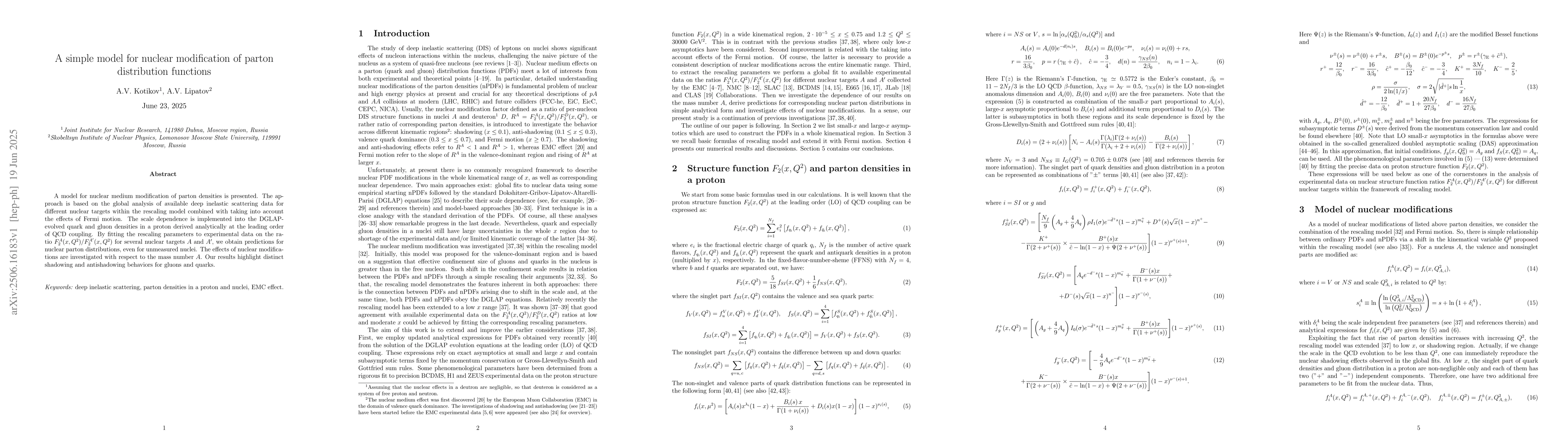 A model for nuclear medium modification of parton densities is presented. The approach is based on the global analysis of available deep inelastic scattering data for different nuclear targets within the rescaling model combined with taking into account the effects of Fermi motion. The scale dependence is implemented into the DGLAP-evolved quark and gluon densities in a proton derived analytically at the leading order of QCD coupling. By fitting the rescaling parameters to experimental data on the ratio $F_2^A(x,Q^2)/F_2^{A^\prime}(x,Q^2)$ for several nuclear targets $A$ and $A^\prime$, we obtain redictions for nuclear parton distributions, even for unmeasured nuclei. The effects of nuclear modifications are investigated with respect to the mass number $A$. Our results highlight distinct shadowing and antishadowing behaviors for gluons and quarks.