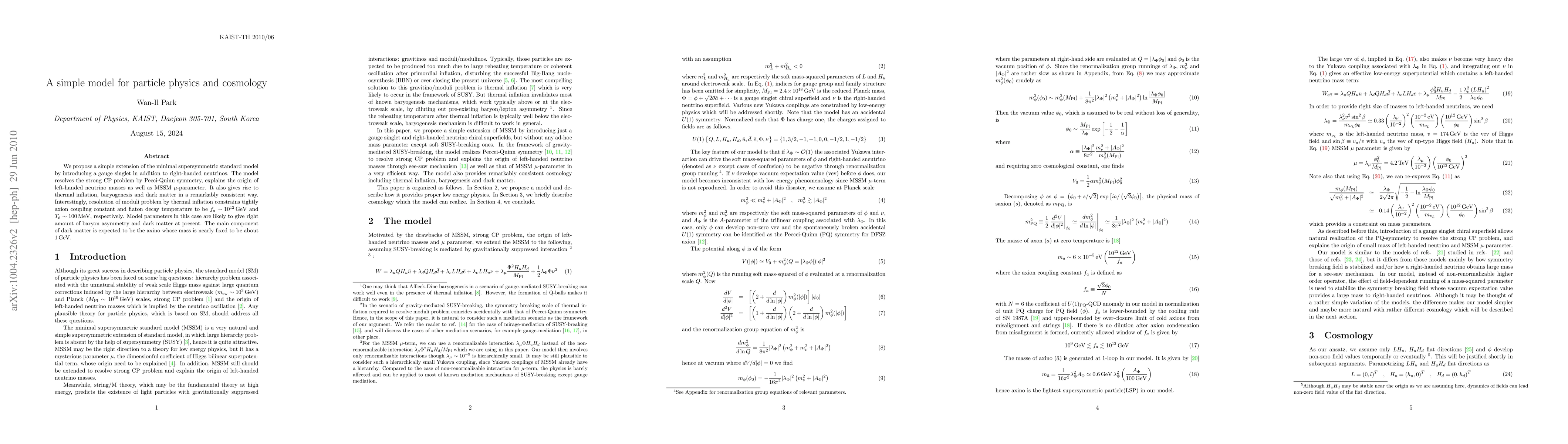 We propose a simple extension of the minimal supersymmetric standard model by introducing a gauge singlet in addition to right-handed neutrinos. The model resolves the strong CP problem by Pecci-Quinn symmetry, explains the origin of left-handed neutrino masses as well as MSSM $\mu$-parameter. It also gives rise to thermal inflation, baryogenesis and dark matter in a remarkably consistent way. Interestingly, resolution of moduli problem by thermal inflation constrains tightly axion coupling constant and flaton decay temperature to be $f_a \sim 10^{12} \GeV$ and $T_\mathrm{d} \sim 100 \MeV$, respectively. Model parameters in this case are likely to give right amount of baryon asymmetry and dark matter at present. The main component of dark matter is expected to be the axino whose mass is nearly fixed to be about $1 \GeV$.