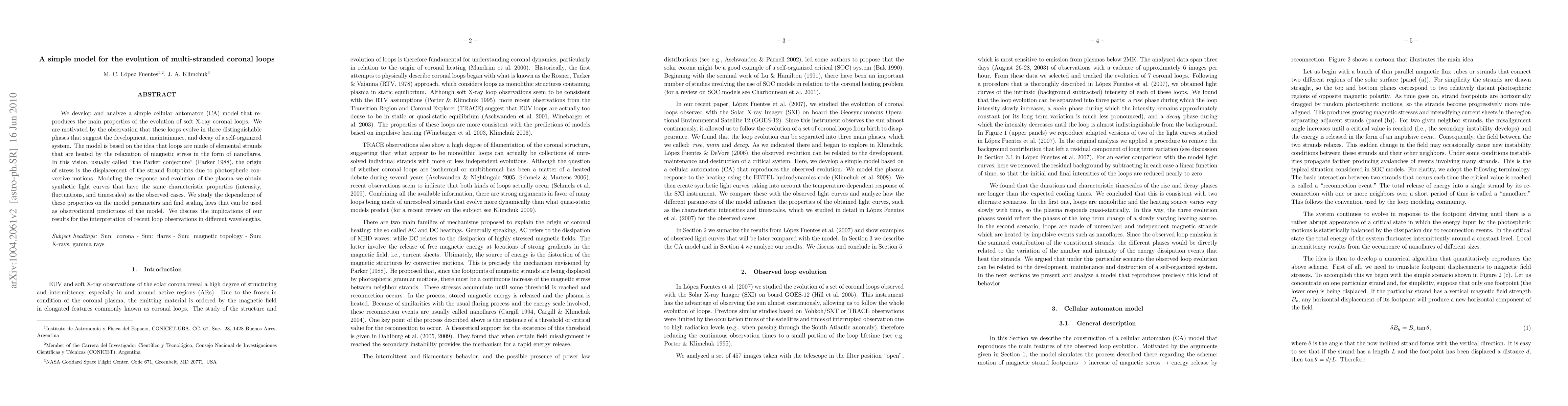 A simple cellular automaton model reproduces the evolution of soft X-ray coronal loops, capturing their development, maintainance, and decay phases. The model predicts scaling laws for loop properties that can be used to interpret recent observations in different wavelengths.