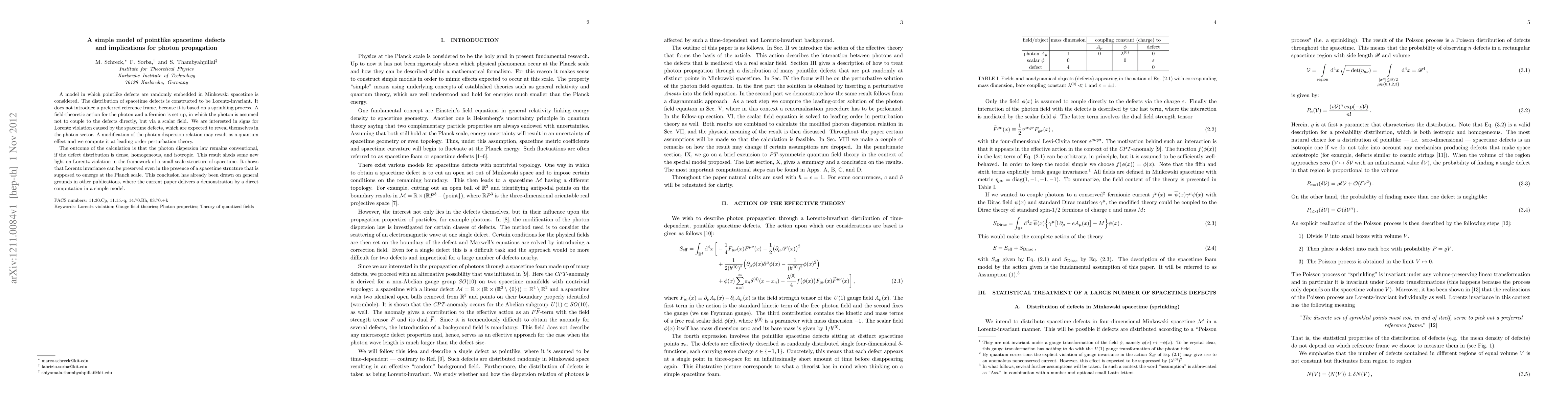 A model in which pointlike defects are randomly embedded in Minkowski spacetime is considered. The distribution of spacetime defects is constructed to be Lorentz-invariant. It does not introduce a preferred reference frame, because it is based on a sprinkling process. A field-theoretic action for the photon and a fermion is set up, in which the photon is assumed not to couple to the defects directly, but via a scalar field. We are interested in signs for Lorentz violation caused by the spacetime defects, which are expected to reveal themselves in the photon sector. A modification of the photon dispersion relation may result as a quantum effect and we compute it at leading order perturbation theory. The outcome of the calculation is that the photon dispersion law remains conventional, if the defect distribution is dense, homogeneous, and isotropic. This result sheds some new light on Lorentz violation in the framework of a small-scale structure of spacetime. It shows that Lorentz invariance can be preserved even in the presence of a spacetime structure that is supposed to emerge at the Planck scale. This conclusion has already been drawn on general grounds in other publications, where the current paper delivers a demonstration by a direct computation in a simple model.