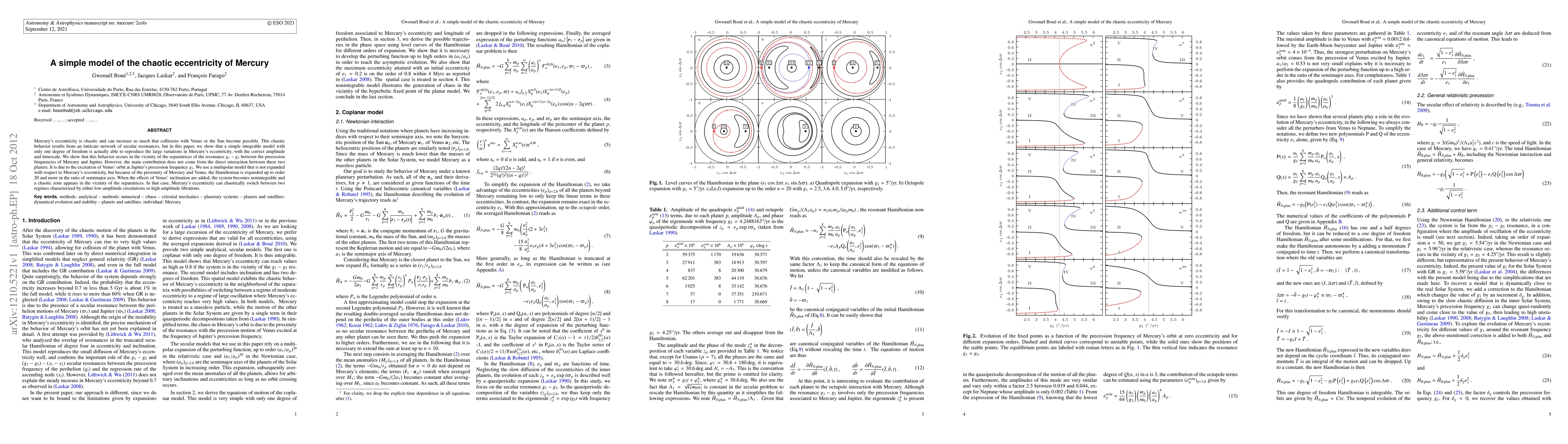 This paper presents a simple integrable model that accurately reproduces Mercury's chaotic eccentricity variations, primarily driven by the excitation of Venus' orbit at Jupiter's precession frequency. The model highlights the chaotic behavior near the separatrices of the g1-g5 resonance, leading to potential high-amplitude eccentricity states.