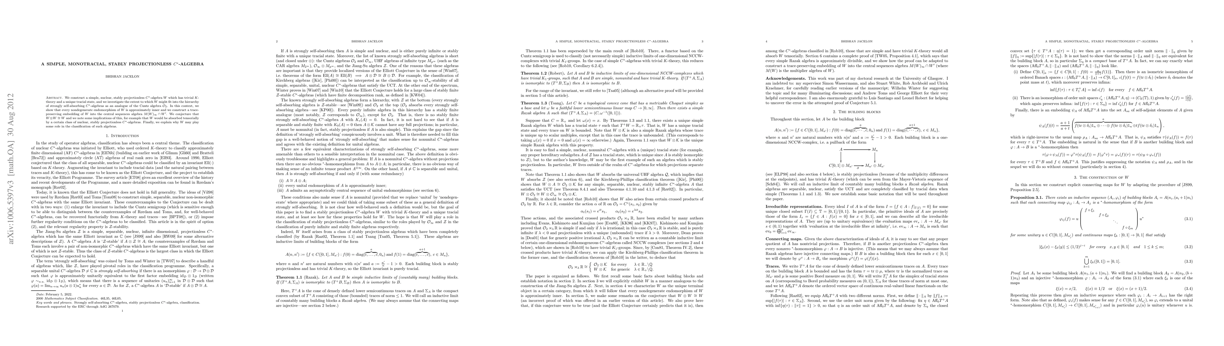 This paper constructs a simple, nuclear, stably projectionless C*-algebra W with trivial K-theory and a unique tracial state, and explores its properties as a potential analogue to the Cuntz algebra O_2. It finds that every nondegenerate endomorphism of W is approximately inner and conjectures that W tensored with itself is isomorphic to W.