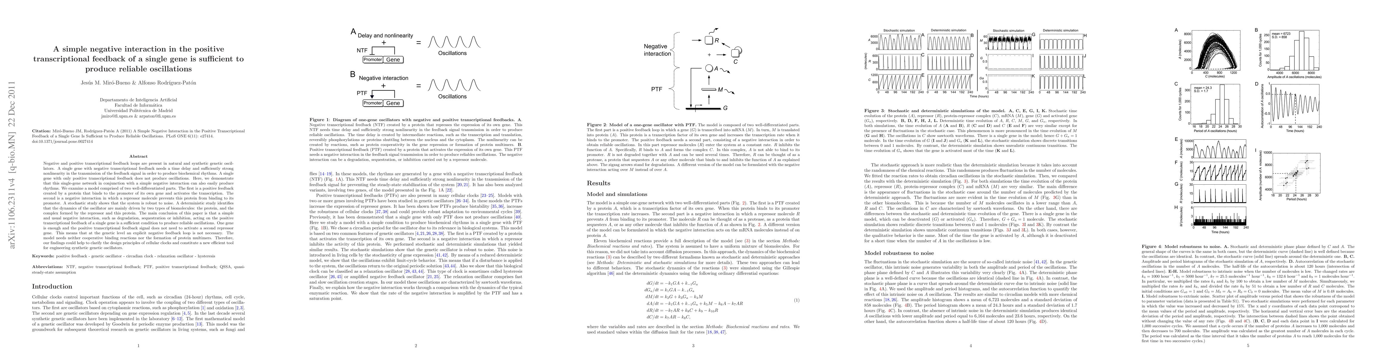 This paper demonstrates that a simple negative interaction in the positive transcriptional feedback loop of a single gene can produce reliable oscillations without requiring additional complex mechanisms. The study shows that a single gene with positive feedback and a negative interaction, such as repression, can generate biochemical rhythms, simplifying the design of genetic oscillators.