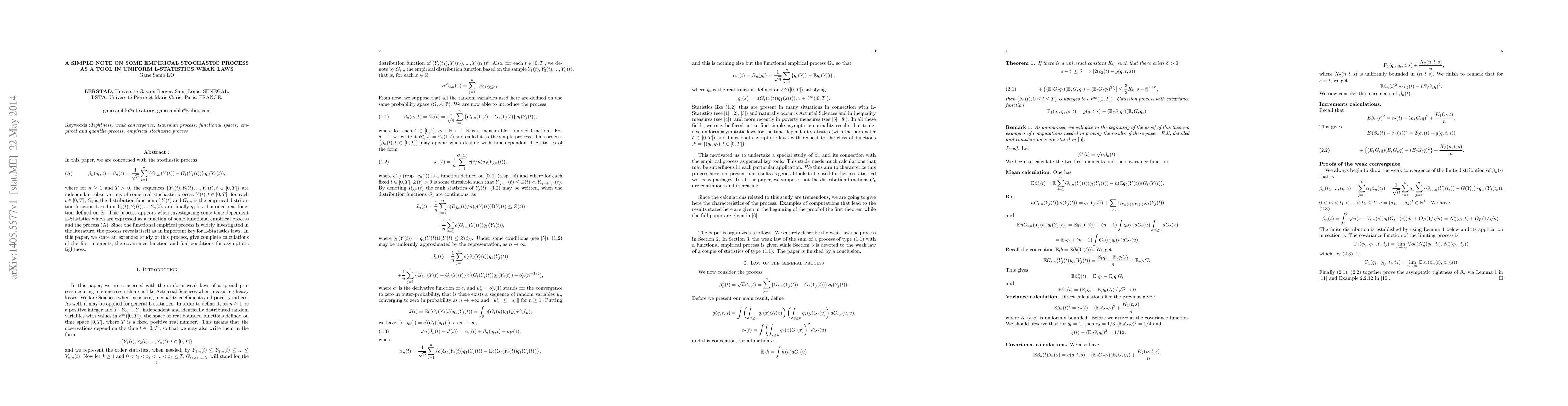 This paper investigates a stochastic process defined by equation (A), which involves empirical distribution functions and observations of a real stochastic process. It explores the process's role in understanding time-dependent L-statistics, providing detailed calculations of its first moments, covariance function, and conditions for asymptotic tightness.