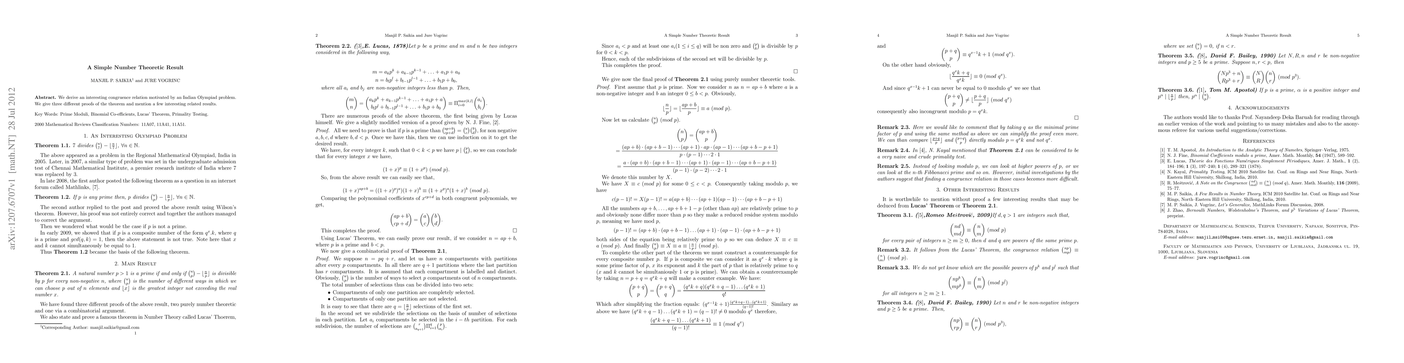This paper presents a novel number theoretic congruence relation, originally inspired by an Indian Olympiad problem. It offers three distinct proofs and highlights related results, contributing to the field with a simple yet intriguing mathematical result.
