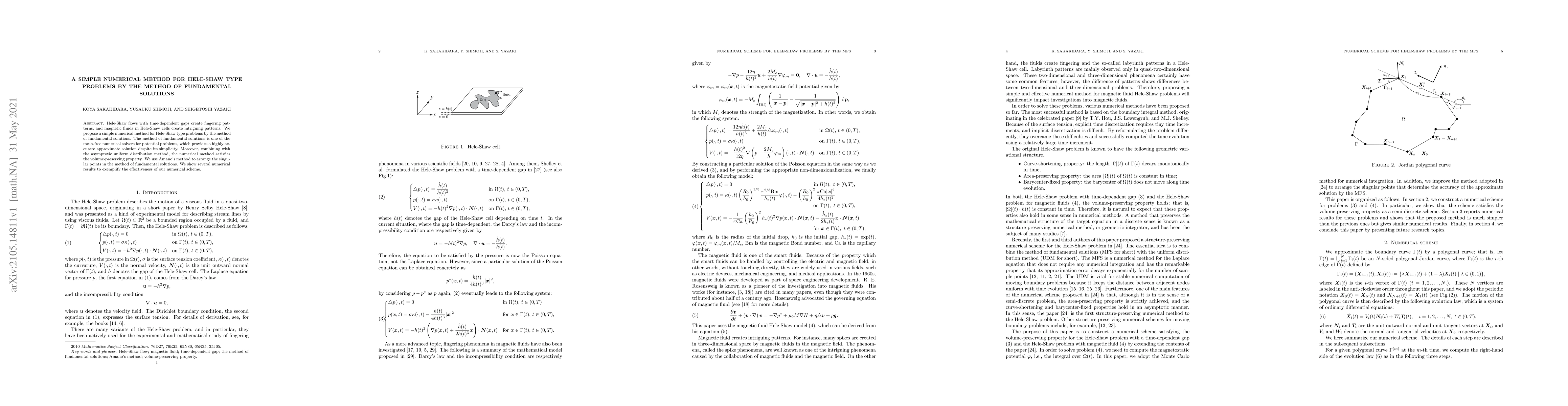 This paper proposes a simple numerical method using the method of fundamental solutions for solving Hele-Shaw type problems, which accurately models fingering patterns in fluid flows. The method, combined with the asymptotic uniform distribution method, ensures volume preservation and demonstrates effectiveness through numerical results.