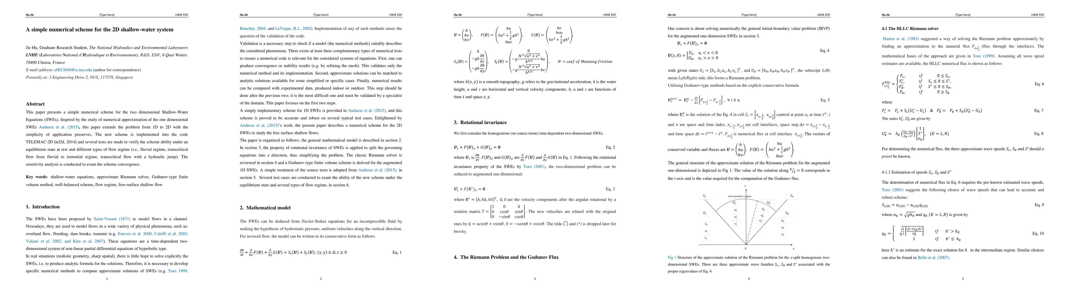A new numerical scheme for the 2D shallow-water equations is introduced, tested on various flow regimes, and found to preserve simplicity while showing good convergence properties.