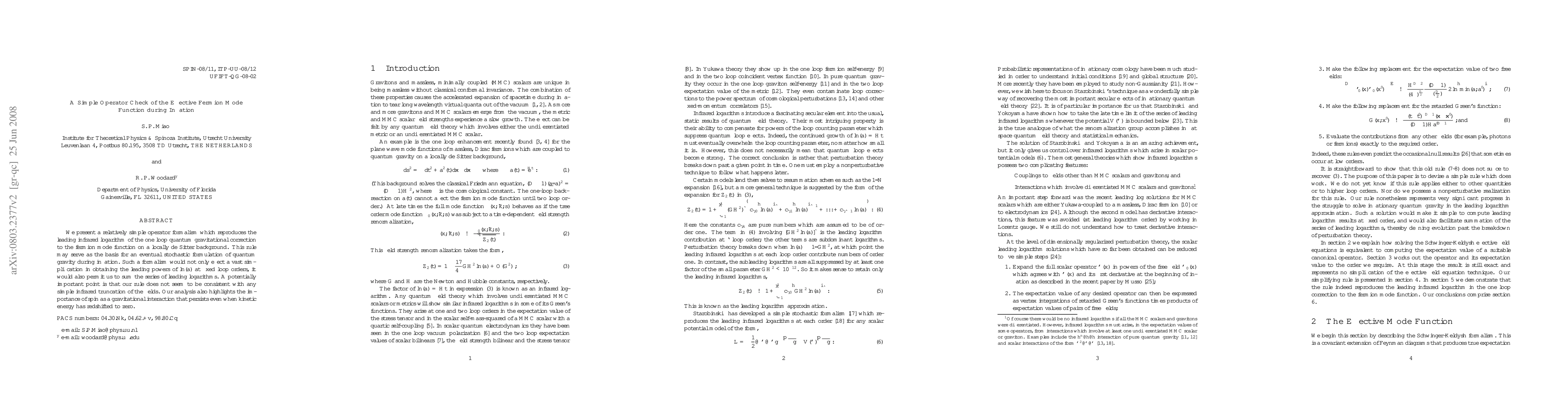 We present a relatively simple operator formalism which reproduces the leading infrared logarithm of the one loop quantum gravitational correction to the fermion mode function on a locally de Sitter background. This rule may serve as the basis for an eventual stochastic formulation of quantum gravity during inflation. Such a formalism would not only effect a vast simplification in obtaining the leading powers of $\ln(a)$ at fixed loop orders, it would also permit us to sum the series of leading logarithms. A potentially important point is that our rule does not seem to be consistent with any simple infrared truncation of the fields. Our analysis also highlights the importance of spin as a gravitational interaction that persists even when kinetic energy has redshifted to zero.