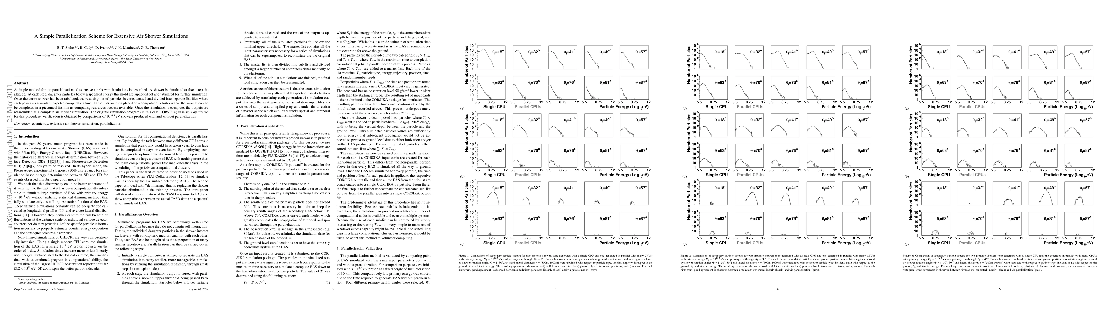 A simple method for the parallelization of extensive air shower simulations is described. A shower is simulated at fixed steps in altitude. At each step, daughter particles below a specified energy threshold are siphoned off and tabulated for further simulation. Once the entire shower has been tabulated, the resulting list of particles is concatenated and divided into separate list files where each possesses a similar projected computation time. These lists are then placed on a computation cluster where the simulation can be completed in a piecemeal fashion as computing resources become available. Once the simulation is complete, the outputs are reassembled as a complete air shower simulation. The original simulation program (in this case CORSIKA) is in no way altered for this procedure. Verification is obtained by comparisons of 10^(16.5) eV showers produced with and without parallelization.