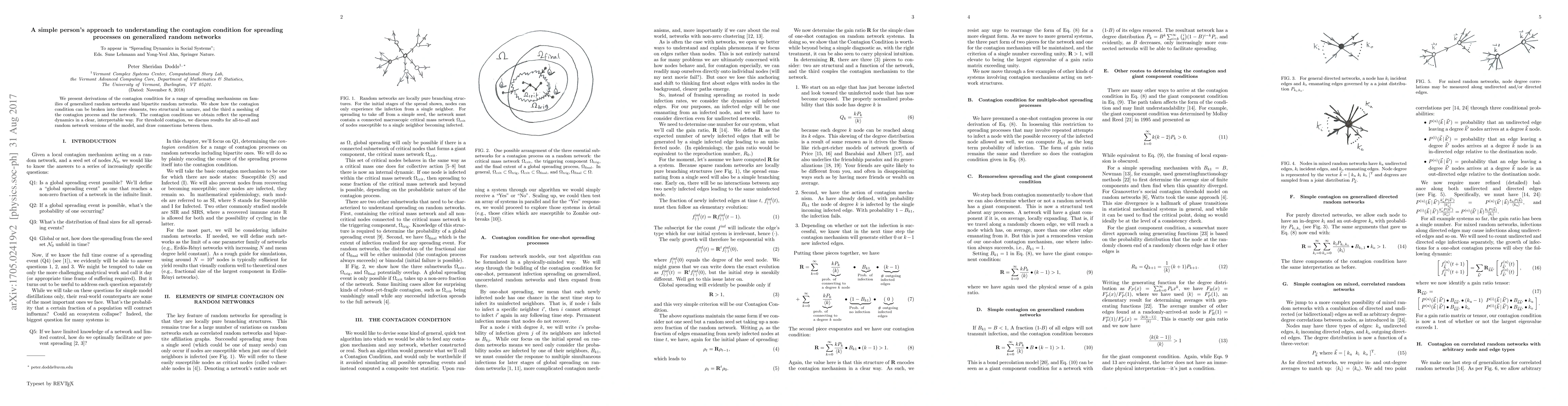 This paper derives the contagion condition for various spreading mechanisms on generalized and bipartite random networks, breaking it into structural and dynamic components. It presents clear interpretations of threshold contagion conditions for all-to-all and random network models and draws connections between them.