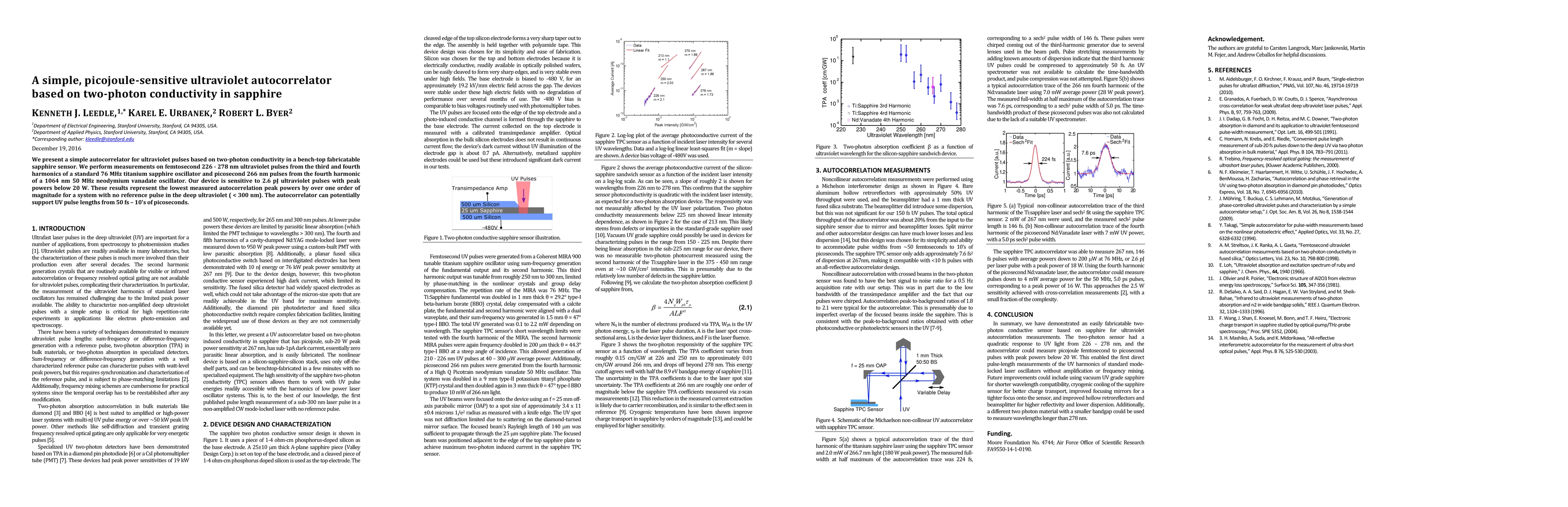 This paper introduces a picojoule-sensitive ultraviolet autocorrelator utilizing two-photon conductivity in sapphire, capable of measuring femtosecond and picosecond pulses in the deep ultraviolet range with peak sensitivities below 20 W, representing significant advancements in deep UV pulse measurement sensitivity.