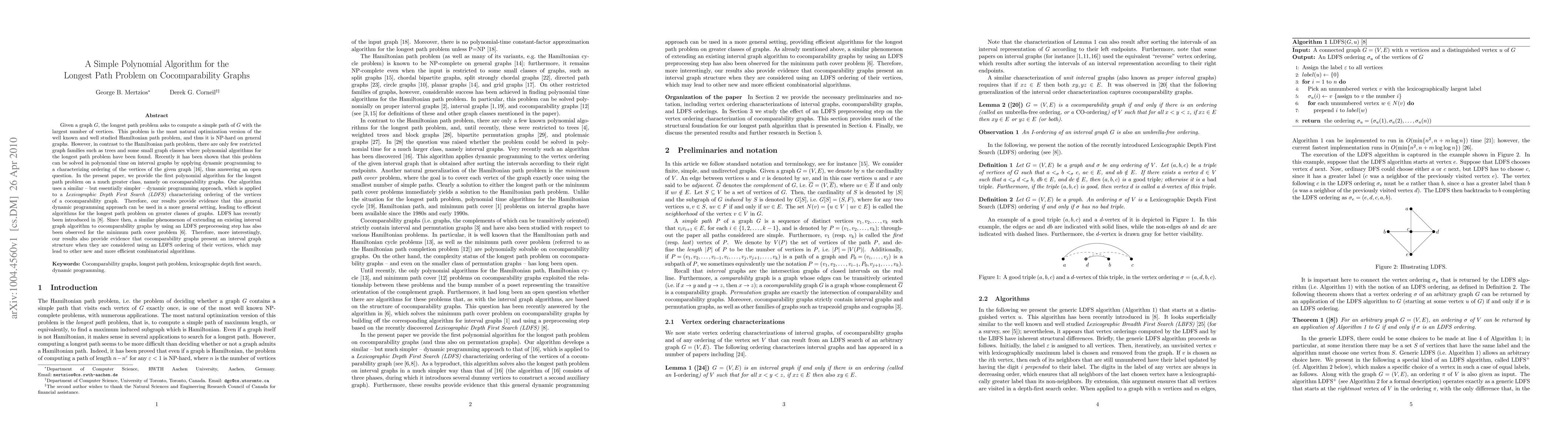 The introduction of a polynomial algorithm for the longest path problem on cocomparability graphs using a dynamic programming approach on LDFS orderings.