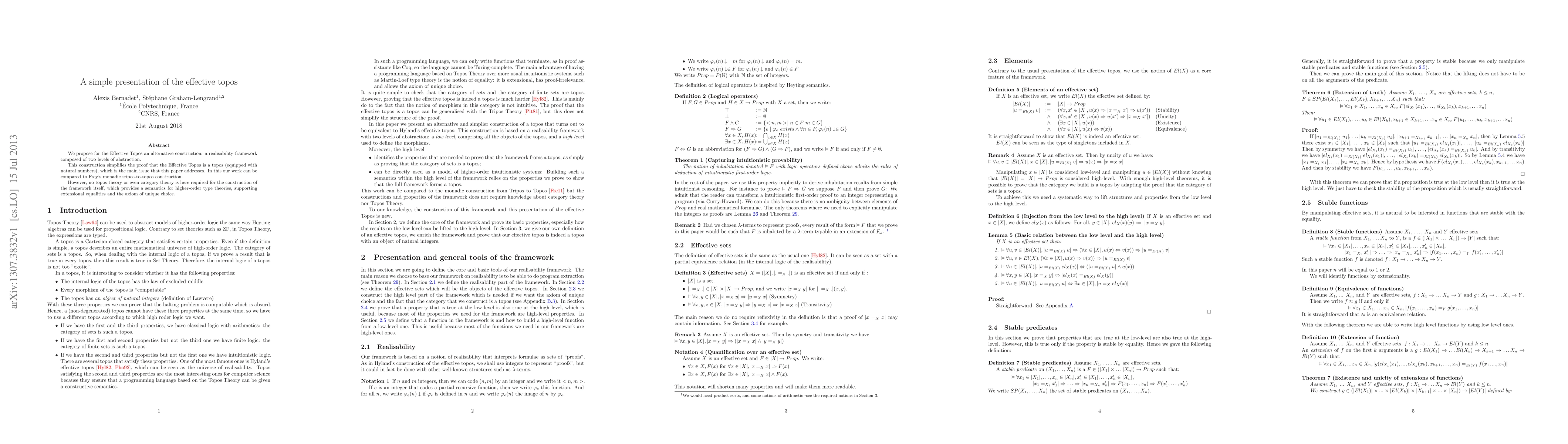 The paper proposes an alternative construction for the Effective Topos using a realisability framework with two levels of abstraction, simplifying the proof that it is a topos.