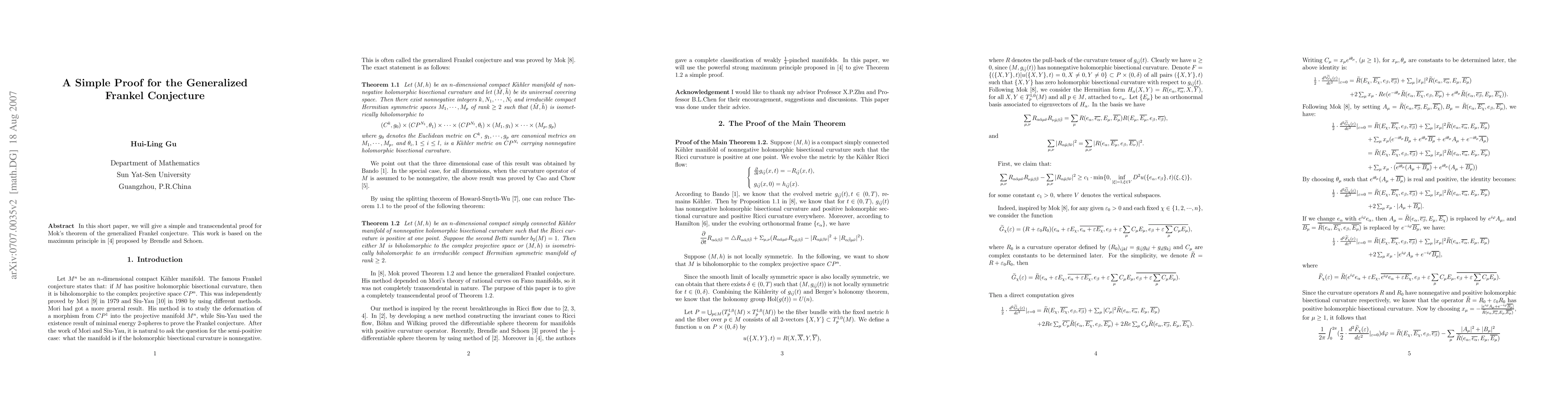 Summary: This paper presents a straightforward proof for Mok's generalized Frankel conjecture, leveraging the maximum principle from Brendle and Schoen's work to achieve a transcendental result. The simplicity of the proof underscores the power of the maximum principle in addressing complex conjectures.