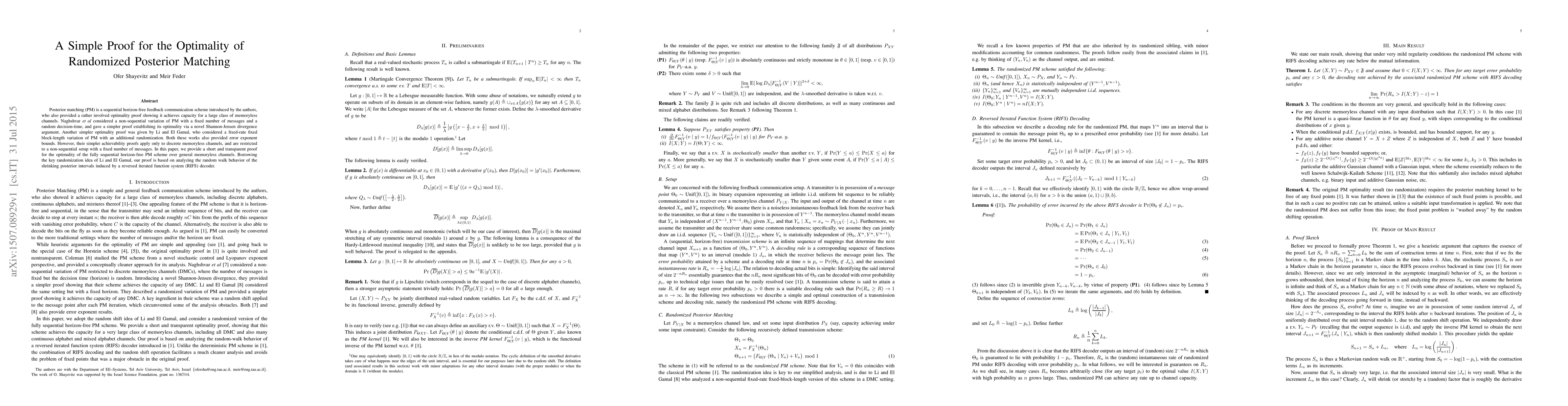 Posterior matching (PM) is a sequential horizon-free feedback communication scheme introduced by the authors, who also provided a rather involved optimality proof showing it achieves capacity for a large class of memoryless channels. Naghshvar et al considered a non-sequential variation of PM with a fixed number of messages and a random decision-time, and gave a simpler proof establishing its optimality via a novel Shannon-Jensen divergence argument. Another simpler optimality proof was given by Li and El Gamal, who considered a fixed-rate fixed block-length variation of PM with an additional randomization. Both these works also provided error exponent bounds. However, their simpler achievability proofs apply only to discrete memoryless channels, and are restricted to a non-sequential setup with a fixed number of messages. In this paper, we provide a short and transparent proof for the optimality of the fully sequential horizon-free PM scheme over general memoryless channels. Borrowing the key randomization idea of Li and El Gamal, our proof is based on analyzing the random walk behavior of the shrinking posterior intervals induced by a reversed iterated function system (RIFS) decoder.
