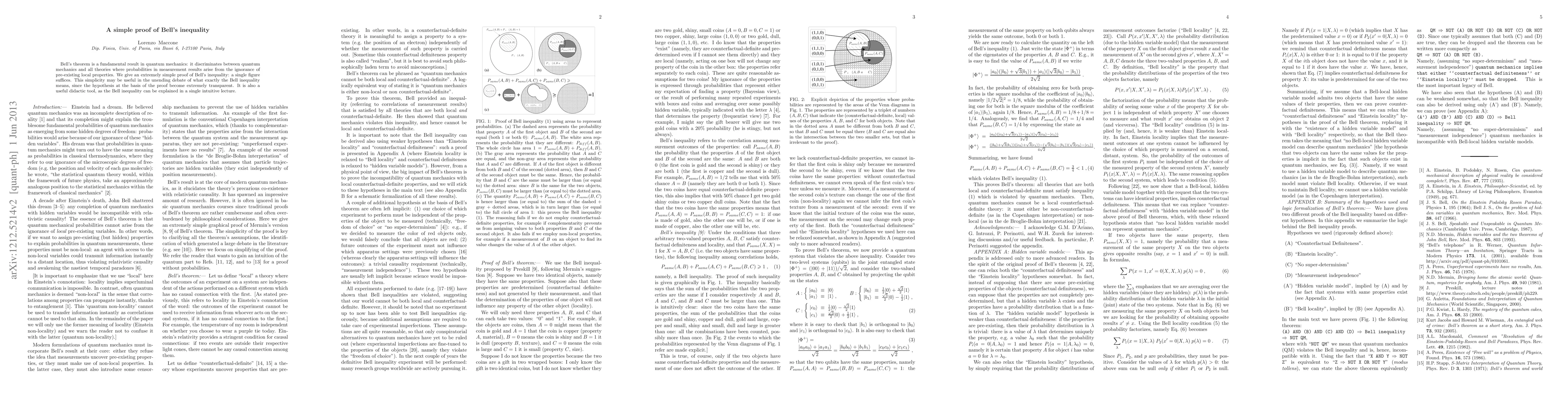 This paper presents a straightforward proof of Bell's inequality, utilizing a single figure to clarify the underlying hypothesis, aiming to resolve debates about its meaning and serve as an intuitive teaching tool.