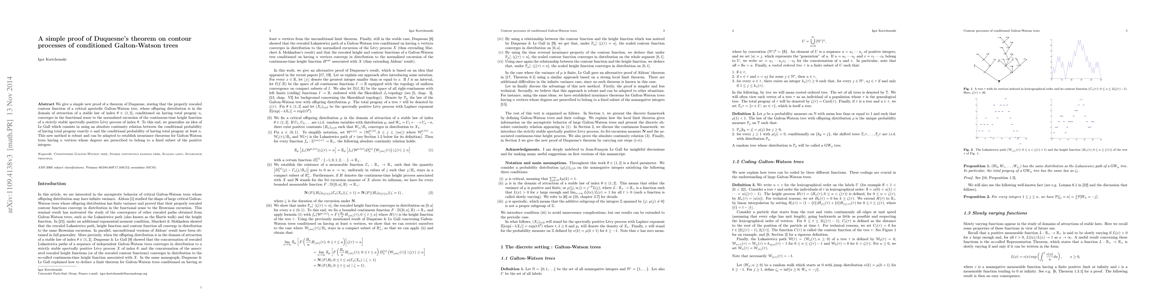 This paper presents a straightforward proof of Duquesne's theorem on the convergence of the contour process of conditioned Galton-Watson trees to a stable Lévy process. The method leverages an absolute continuity relation between the probabilities of progeny counts, generalizing Le Gall's approach.
