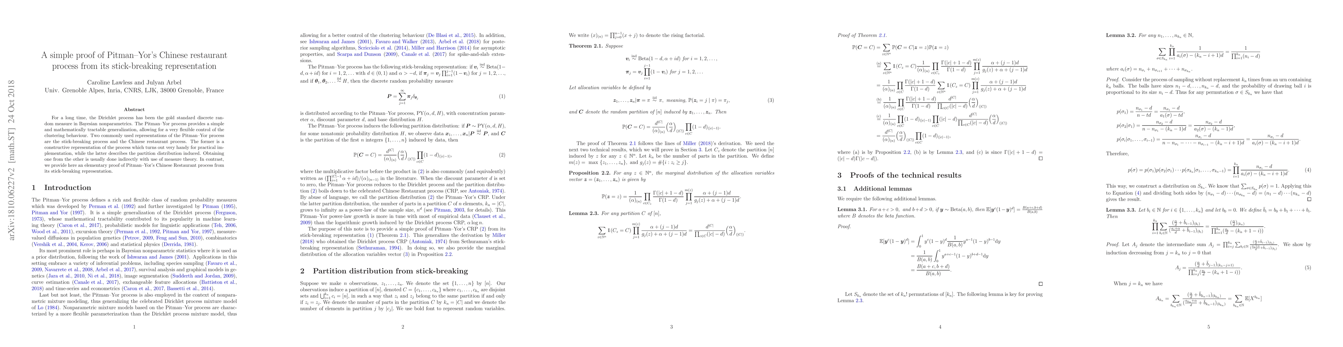The paper presents a straightforward proof linking Pitman-Yor's Chinese restaurant process to its stick-breaking representation, offering a more intuitive understanding compared to the traditional indirect measure-theoretic approach. This simplifies the mathematical connection between the two representations, enhancing practical implementation.