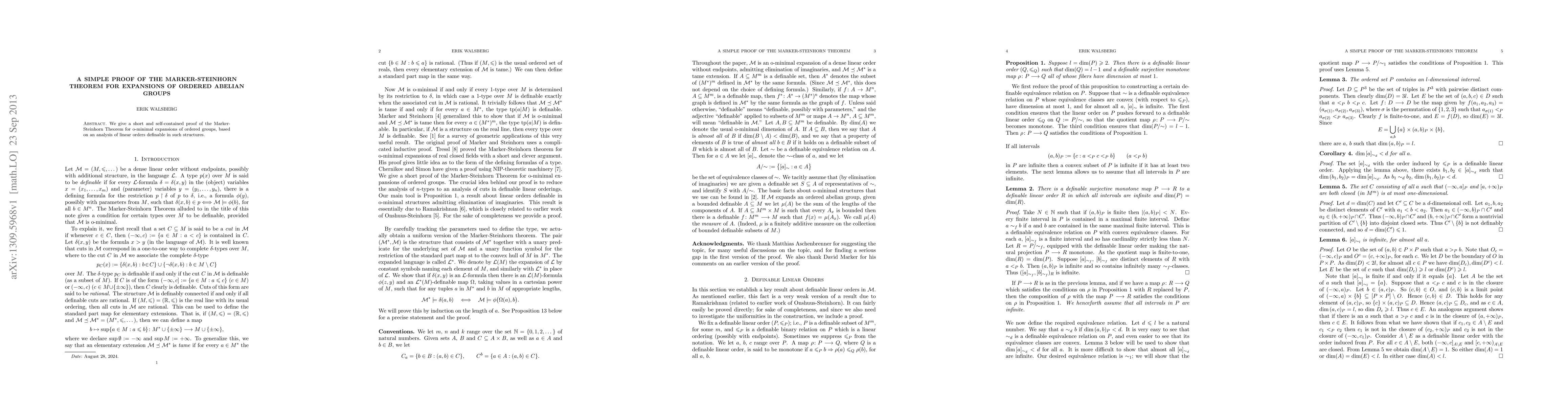 Summary: This paper presents a concise proof of the Marker-Steinhorn Theorem within the context of o-minimal expansions of ordered abelian groups, focusing on the properties of linear orders definable in these structures. The proof is self-contained and straightforward.