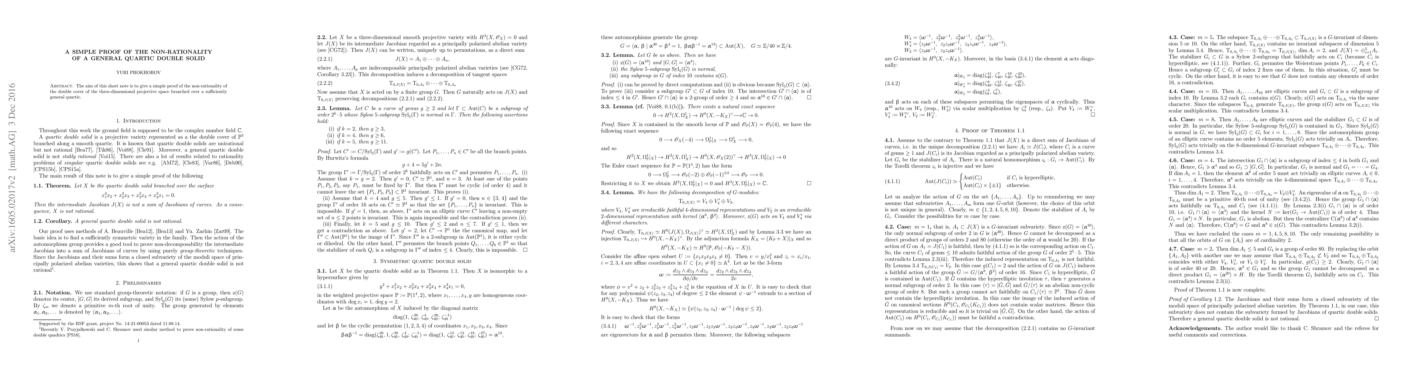 The aim of this short note is to give a simple proof of the non-rationality of the double cover of the three-dimensional projective space branched over a sufficiently general quartic.